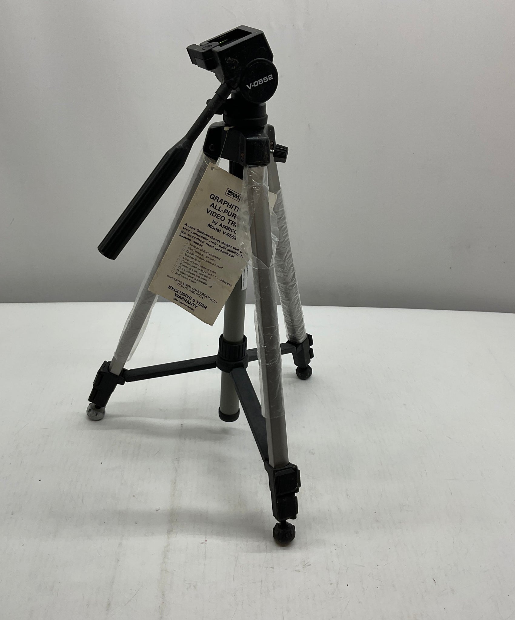 - Description: Ambico V-0552 Black Gray Adjustable Height Quick Release Video Tripod With Tag