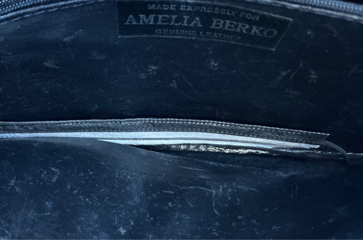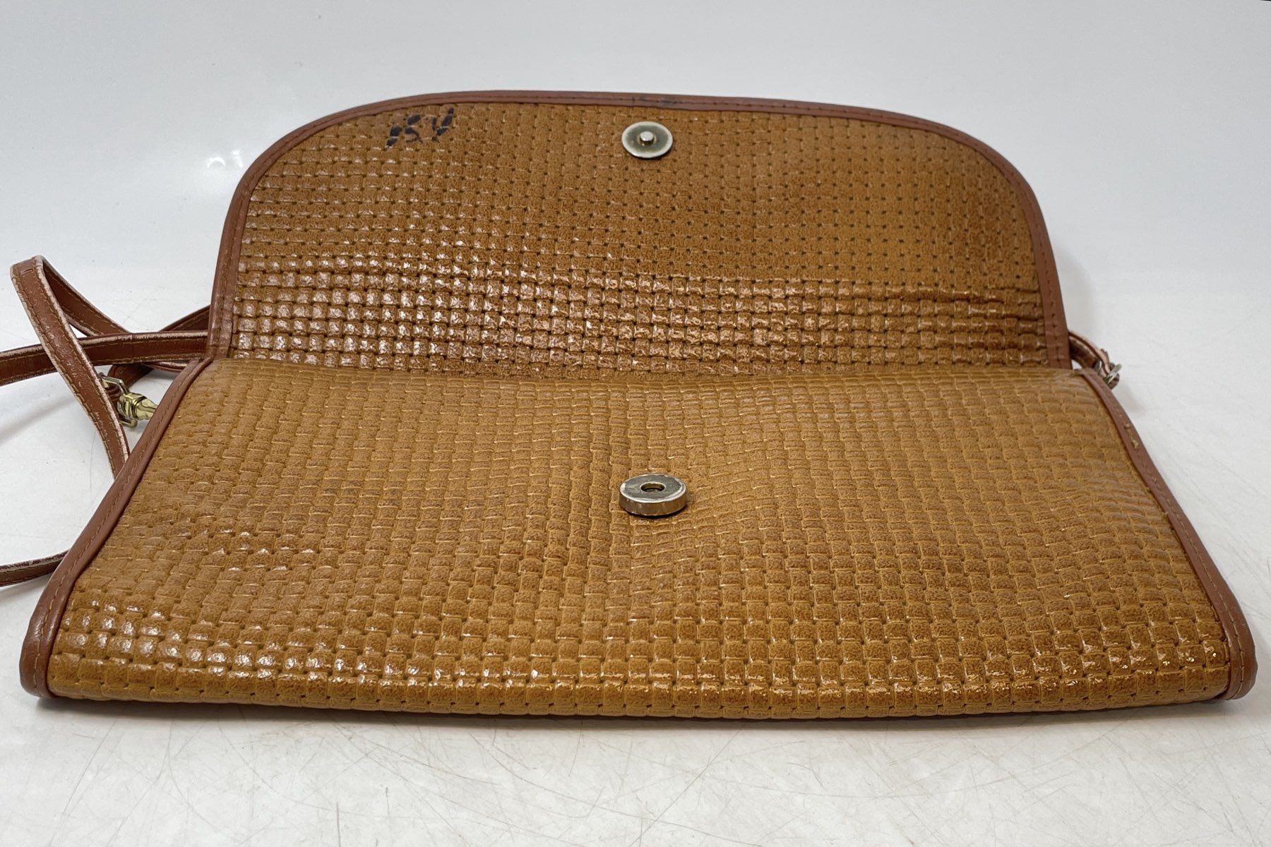 - Description: Amelia Berko Womens Brown Embossed Leather Weave Design Snap Flap Shoulder Bag