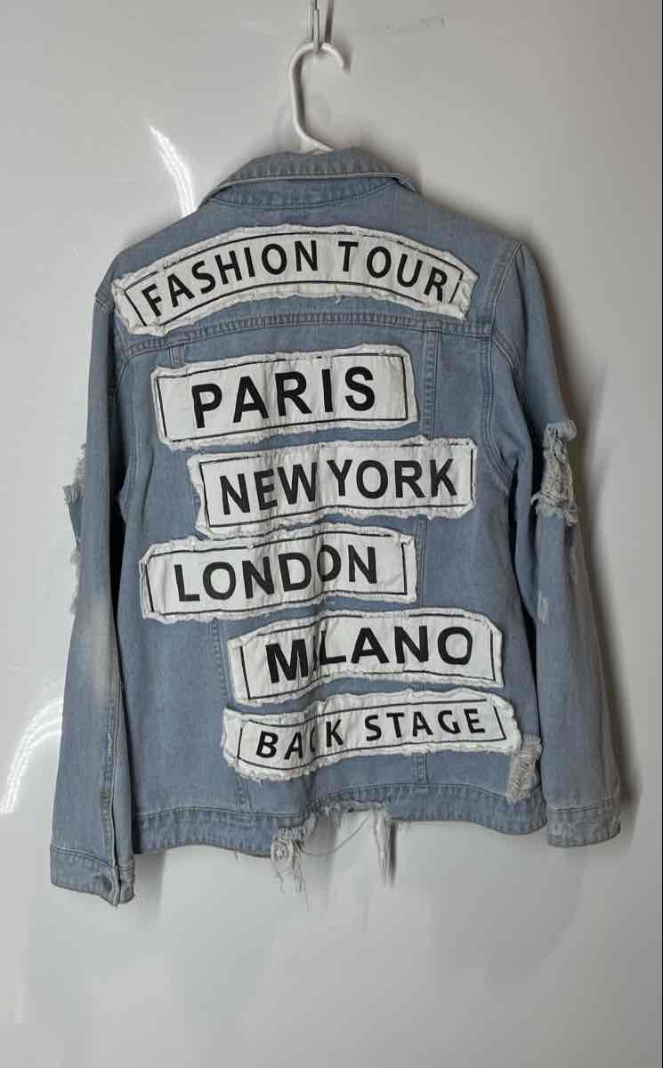 - Description: American Bazi Womens Blue Denim Distressed Long Sleeve Jean Jacket Size Small