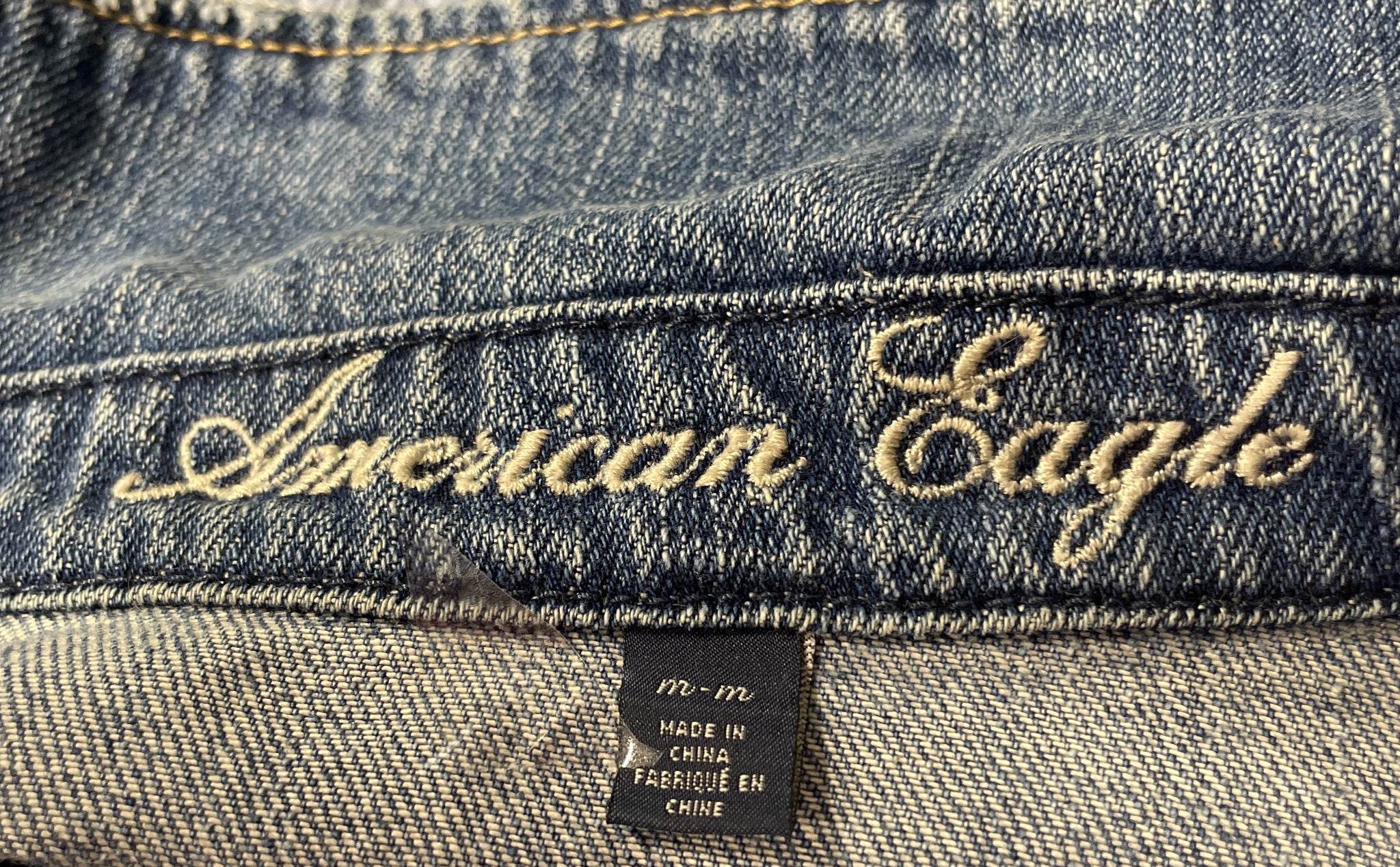 - Description: American Eagle Outfitters Womens Blue Denim Long Sleeve Short Jean Jacket Size M