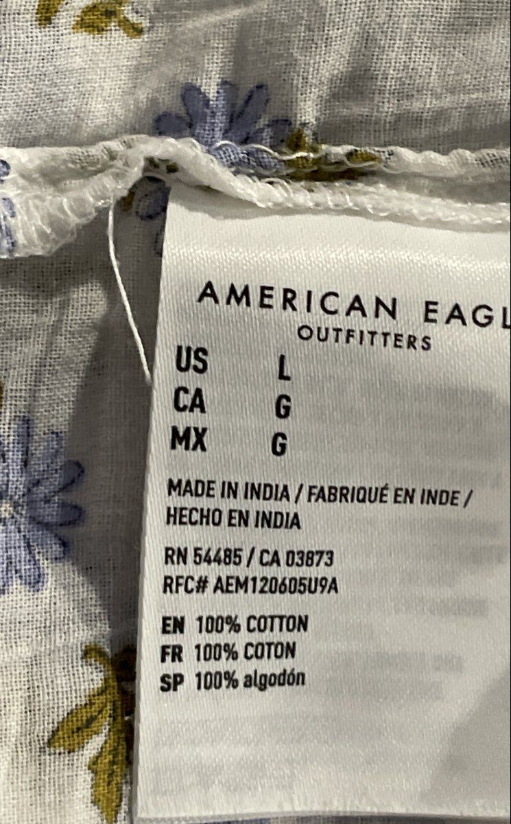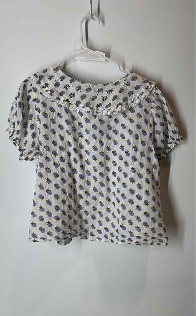 - Description: American Eagle Outfitters Womens White Blue Floral Short Sleeve Blouse Top Sz L