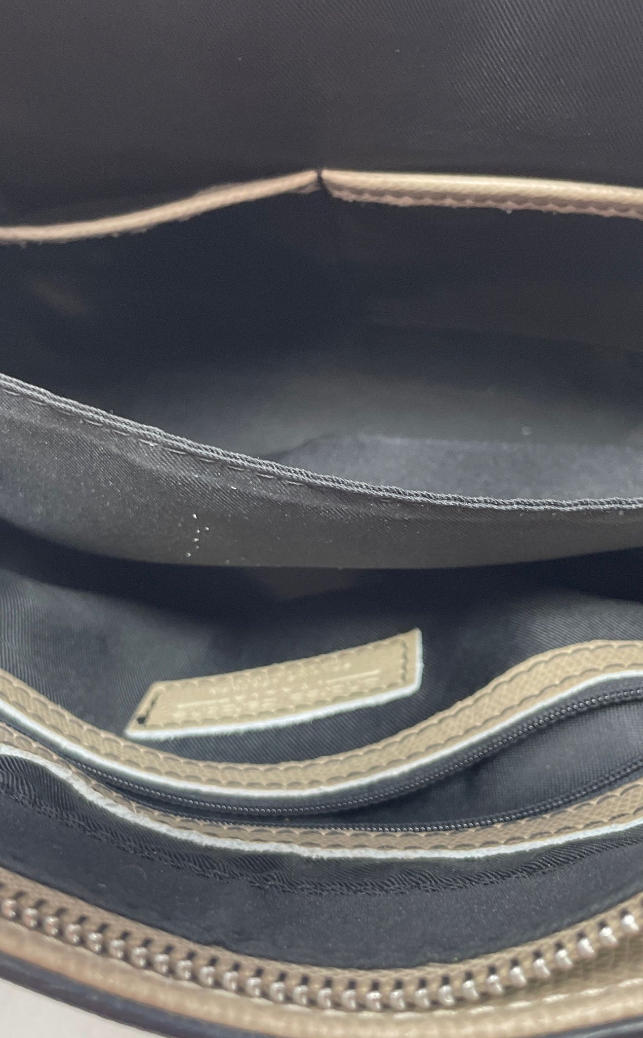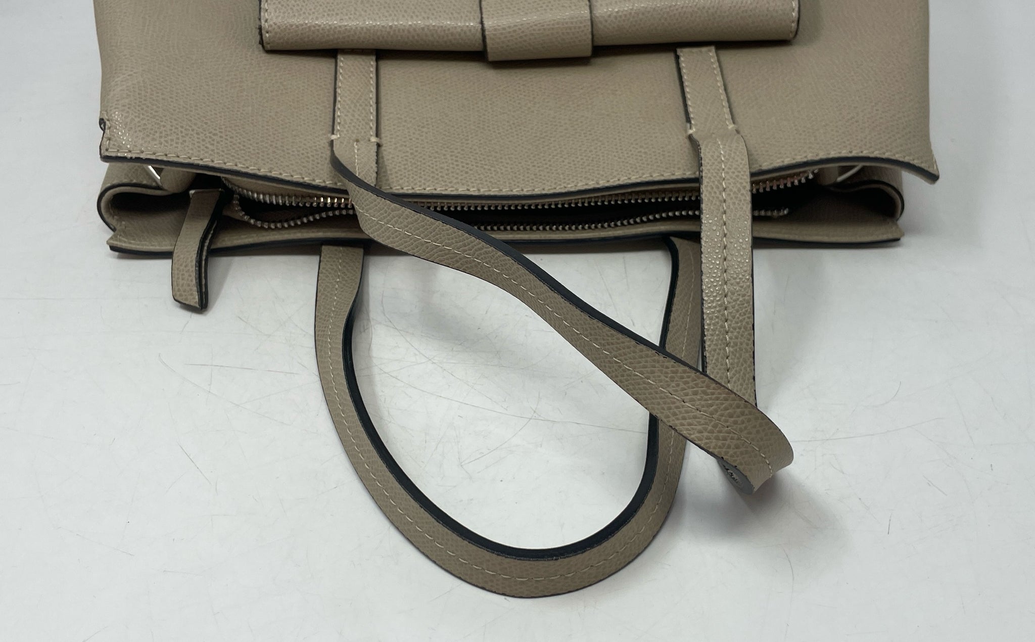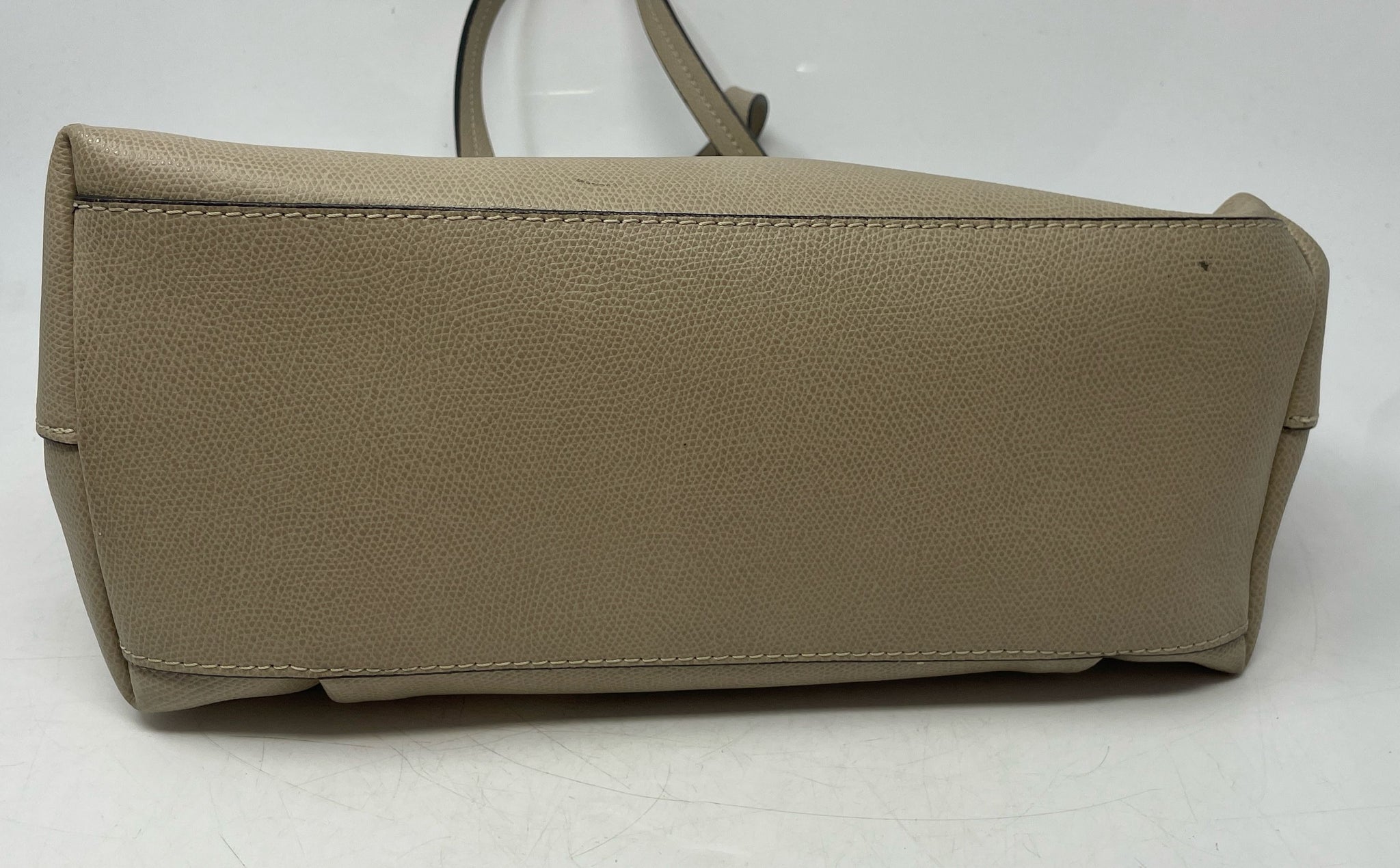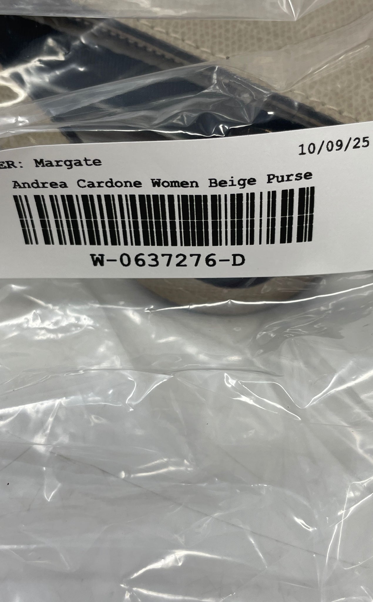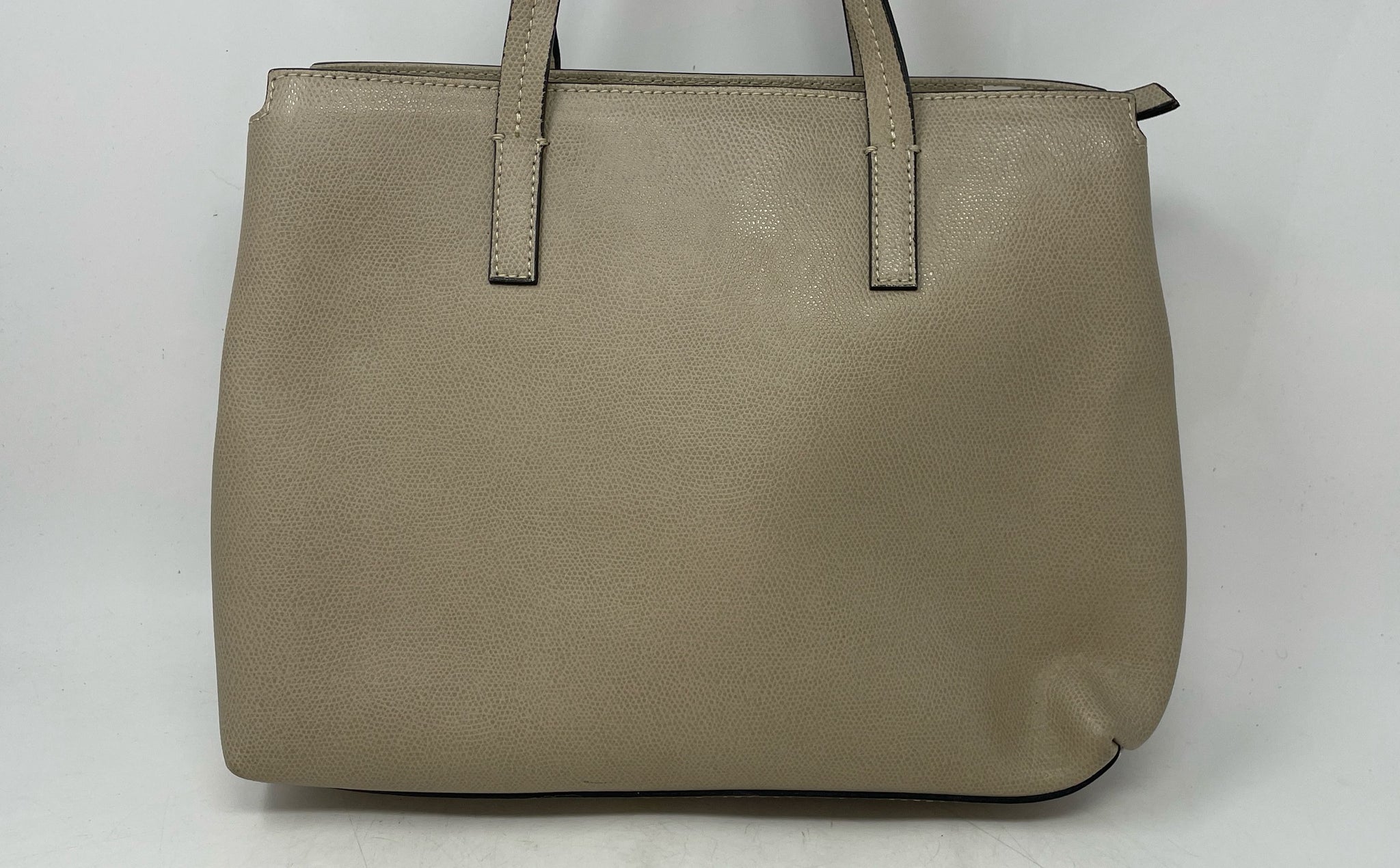 - Description: Andrea Cardone Womens Beige Leather Turnlock Front Pocket Zip Top Tote Purse