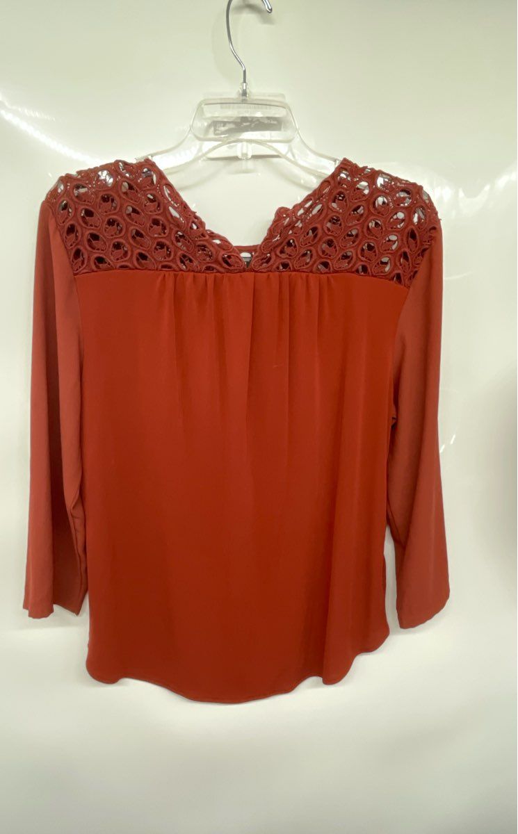 • Description: Ann Taylor Womens Brown Eyelet Long Sleeve Round Neck Blouse Top Size Large