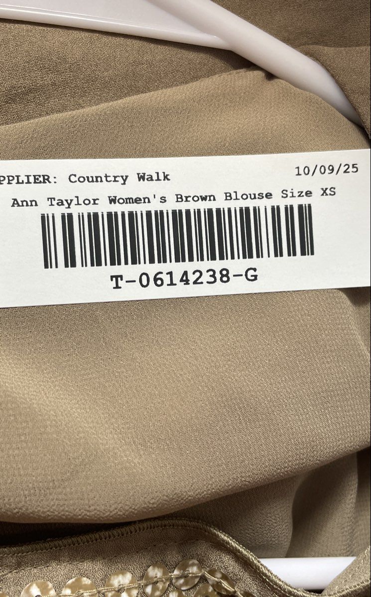 - Description: Ann Taylor Womens Brown Short Sleeve Sequin Round Neck Blouse Top Size XS