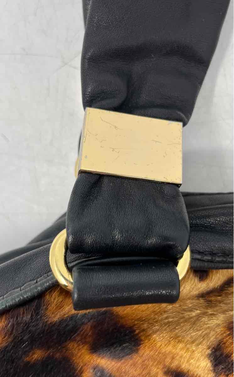 - Description: Antonio Melani Womens Black Brown Animal Print Inner Pockets Shoulder Bag