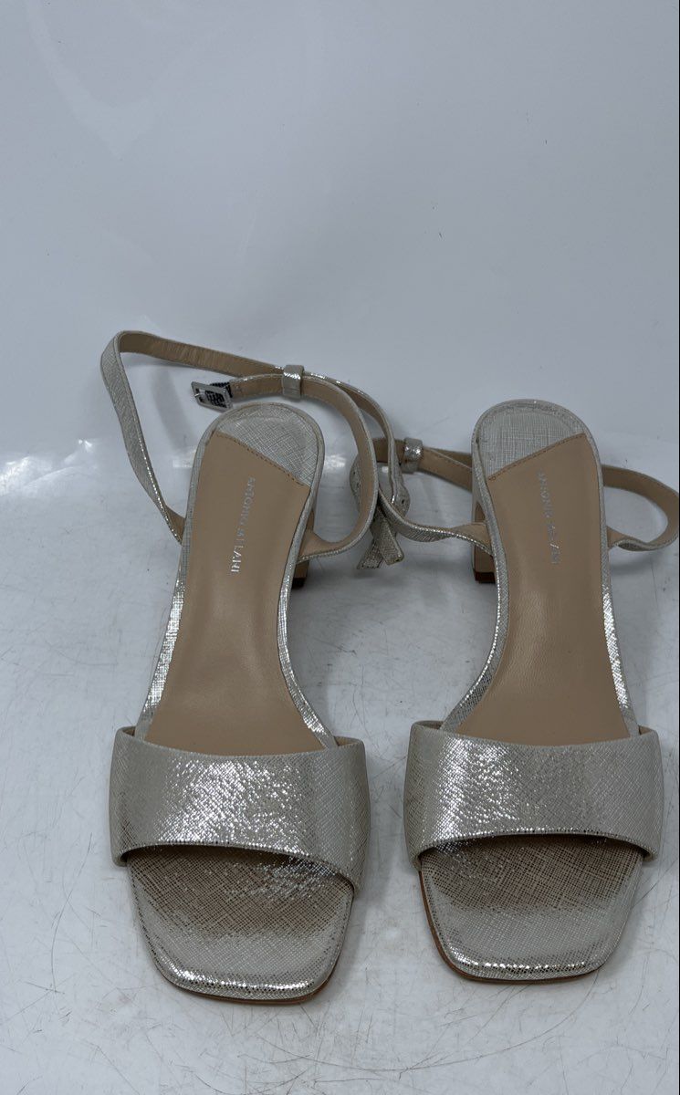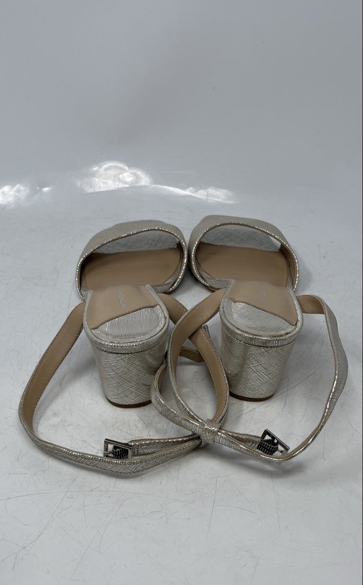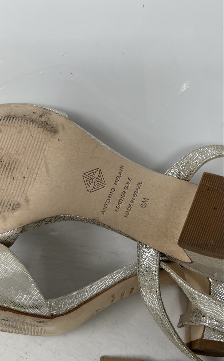 • Description: Antonio Melani Womens Silver Leather Open Toe Ankle Strap Sandals Size 8M