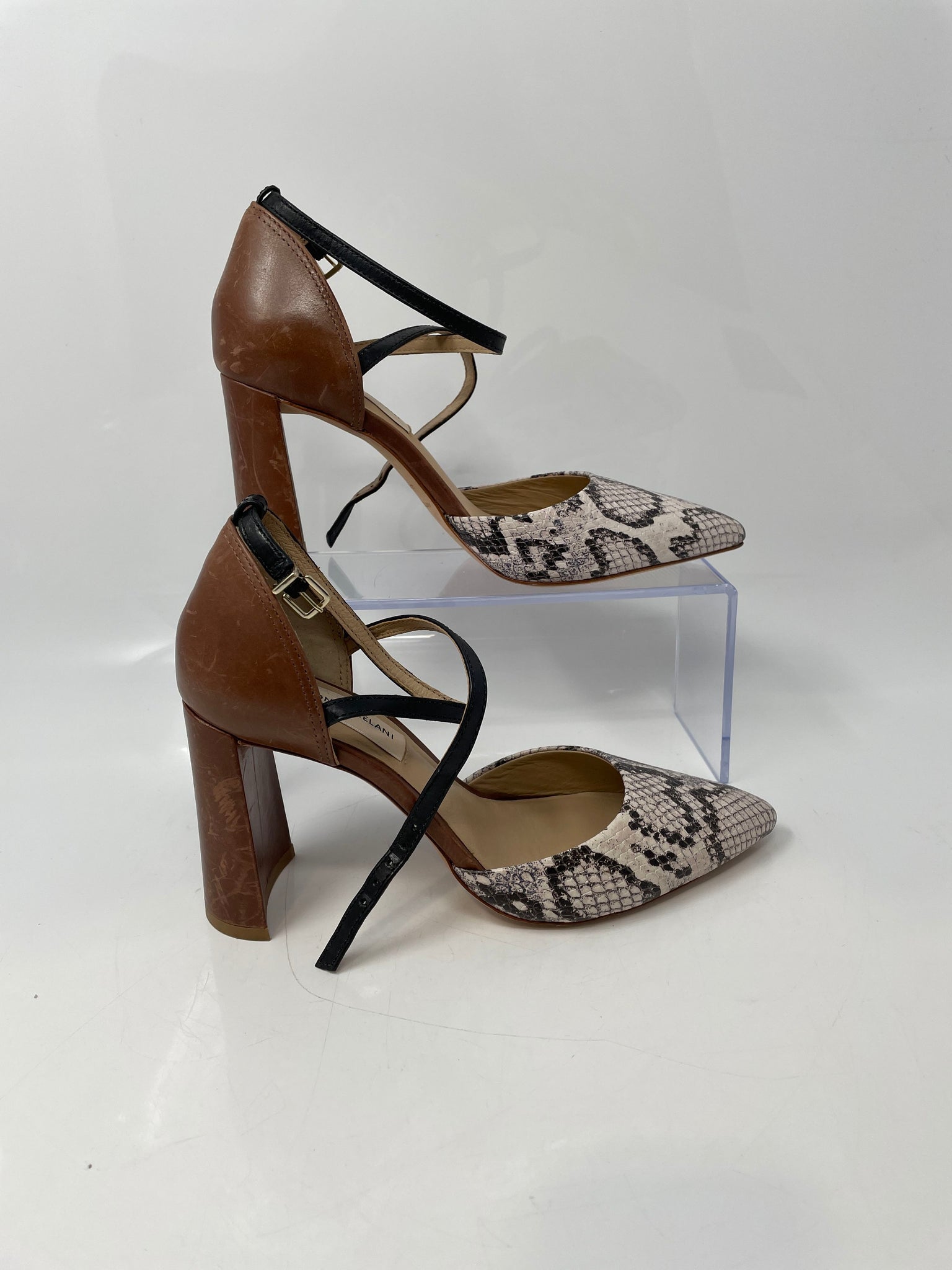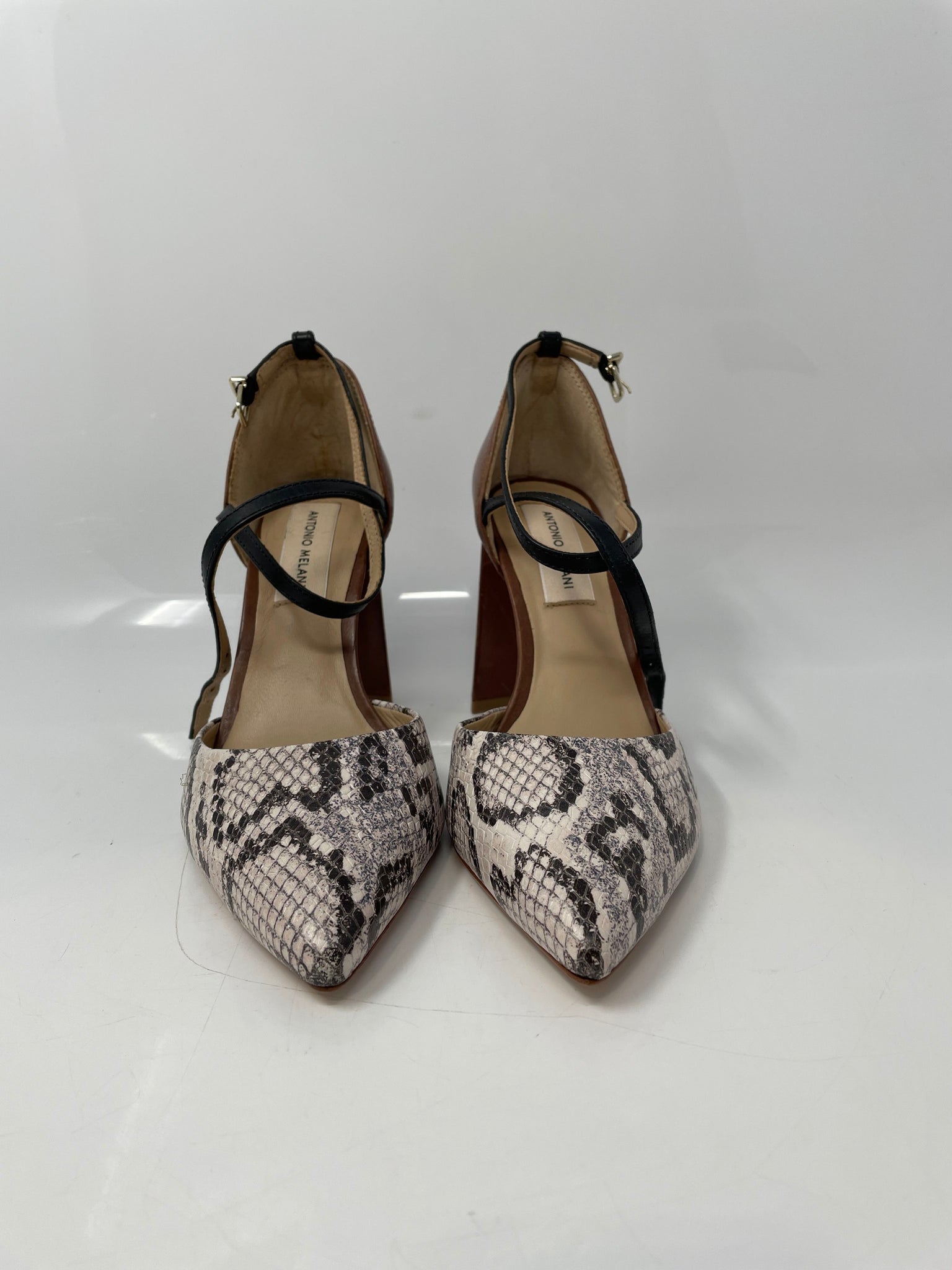 - Description: Antonio Melani Womens Whittley Multicolor Snakeskin Block Ankle Strap Heels Sz 6