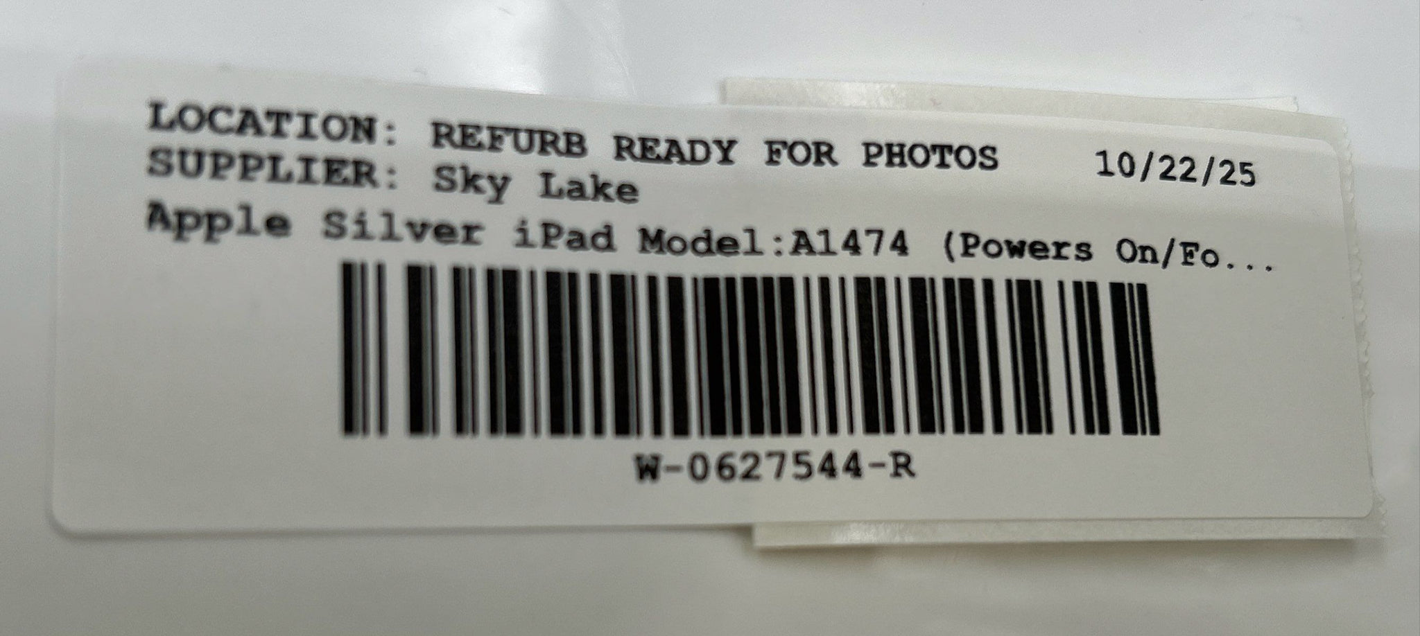 - Description: Apple iPad Air Silver iOS Tablet Model A1474 Powers On For Parts