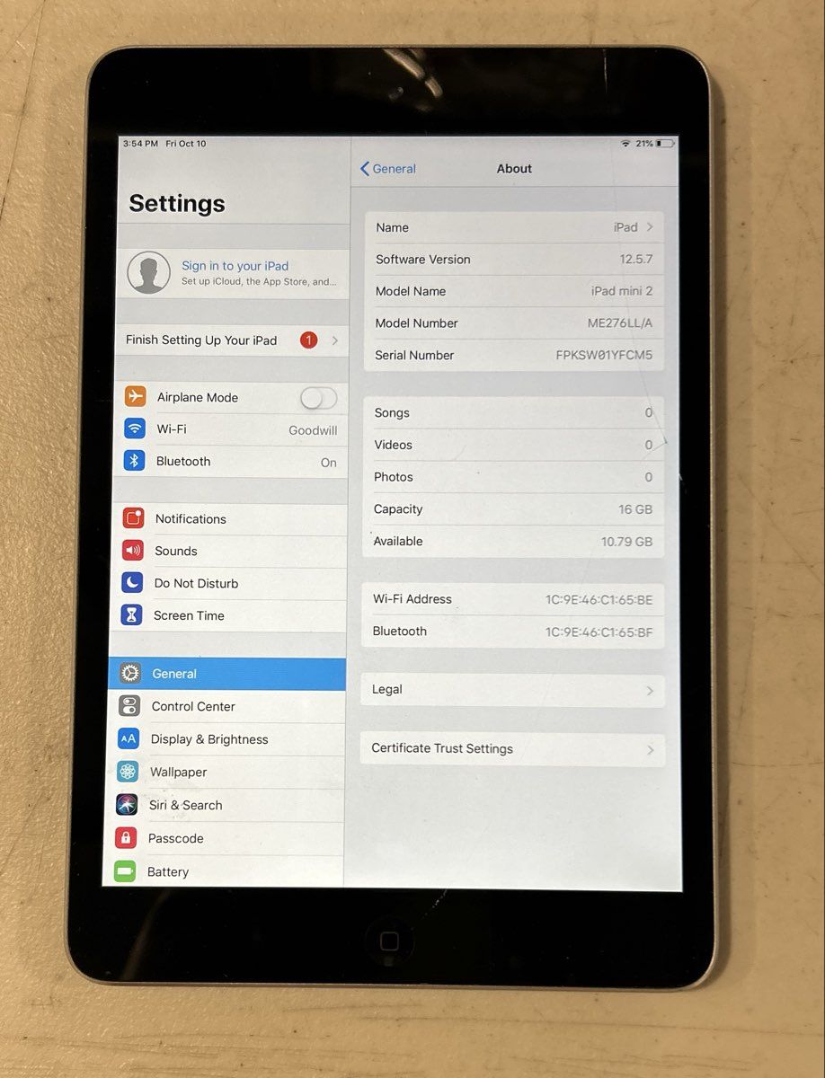 - Description: Apple iPad Mini 2 Model A1489 Gray Tablet Cracked Screen Unlocked