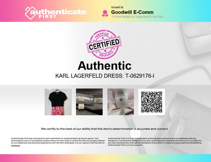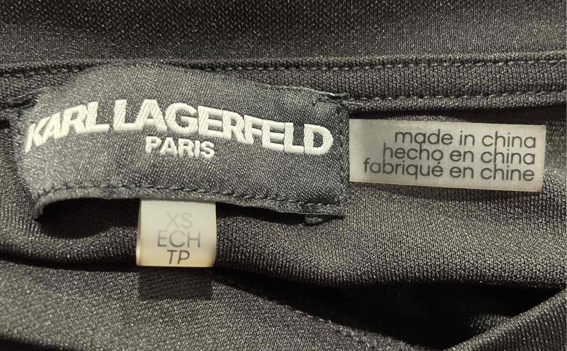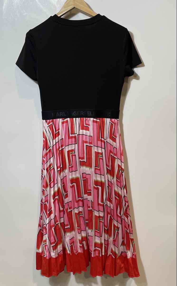 - Description: Authentic Karl Lagerfeld Paris Womens Black Multicolor T-Shirt Dress Size XS