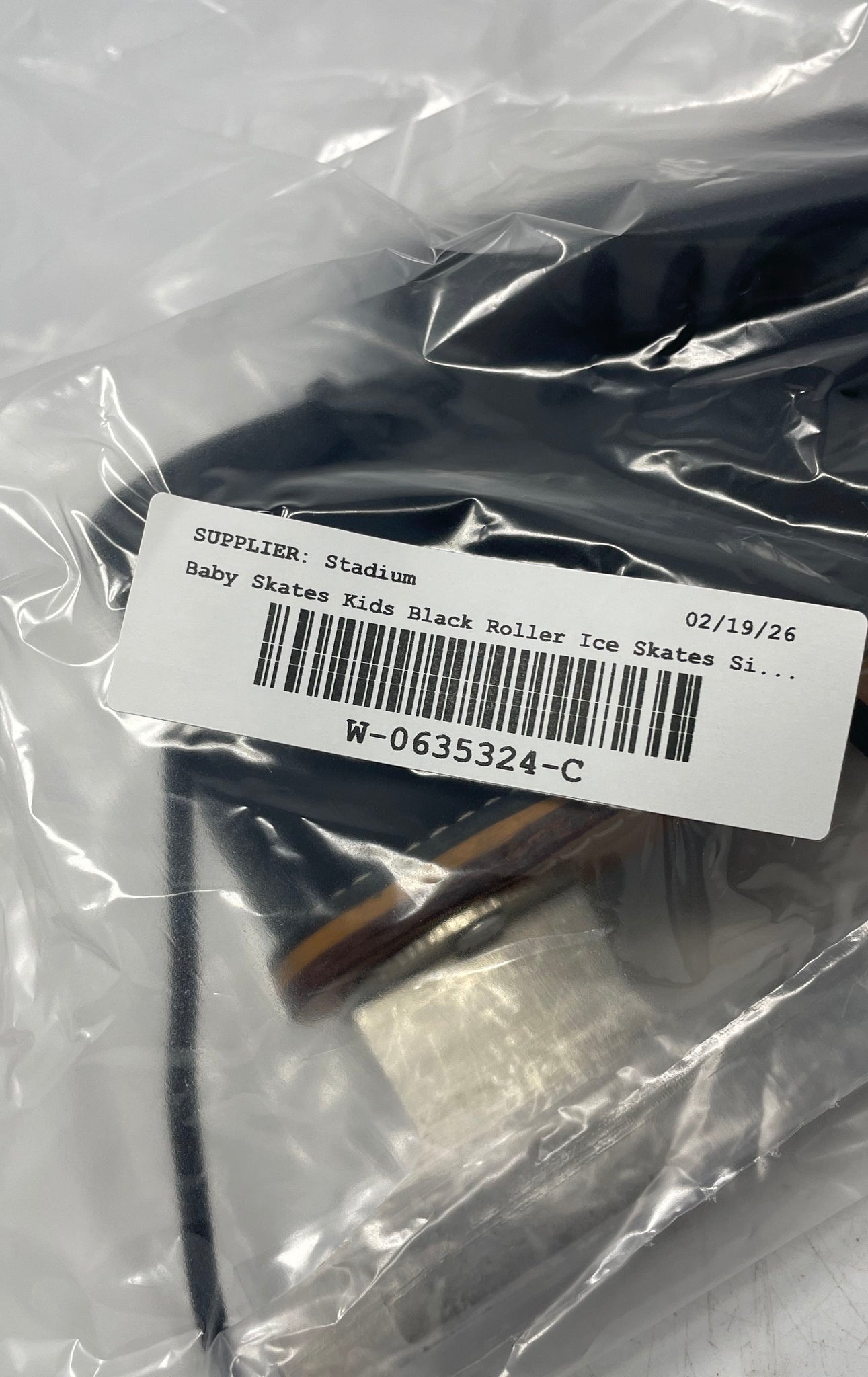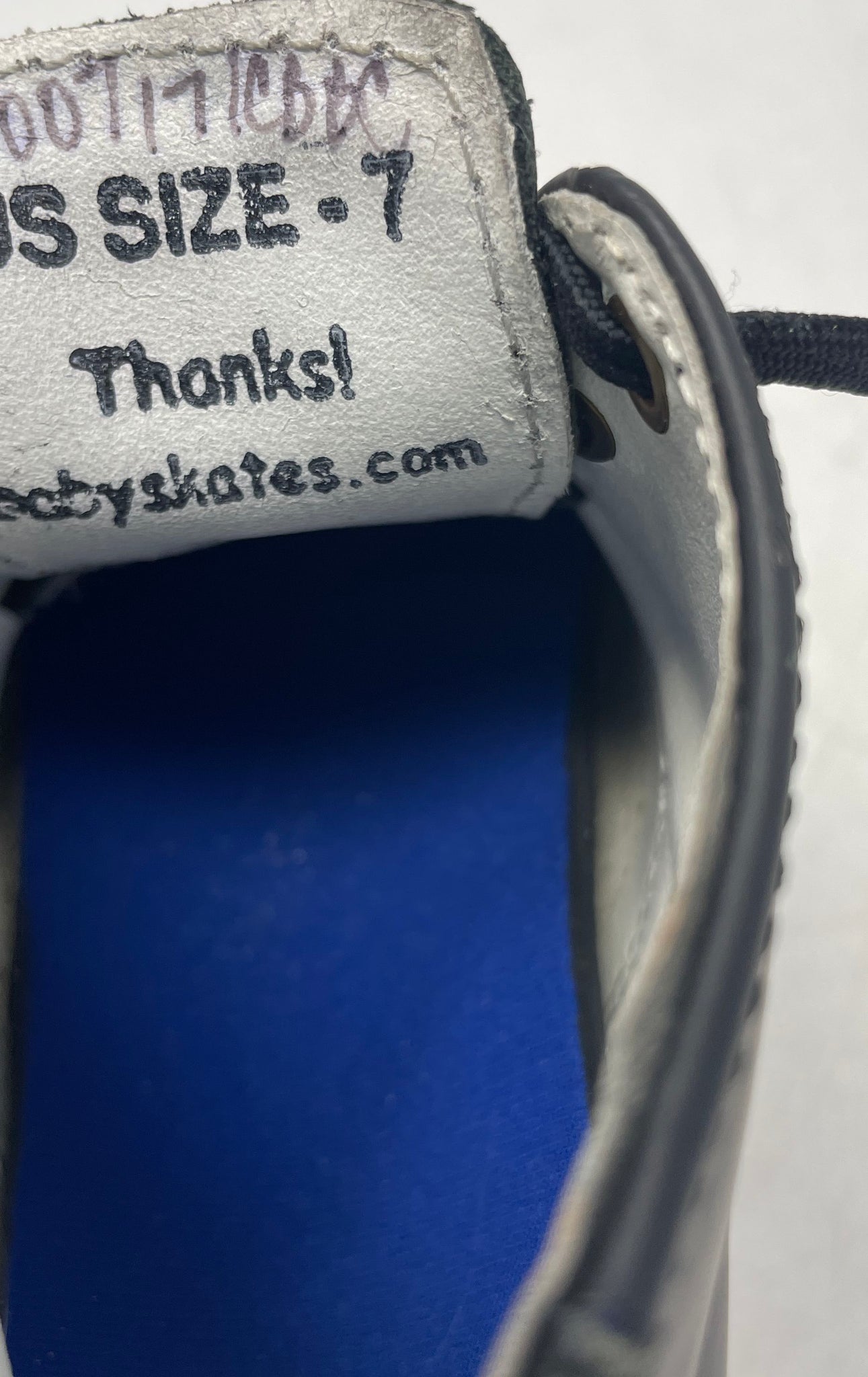 - Description: Baby Skates Kids Black Leather Lace-Up Mid Top Roller Ice Skates Size 7
