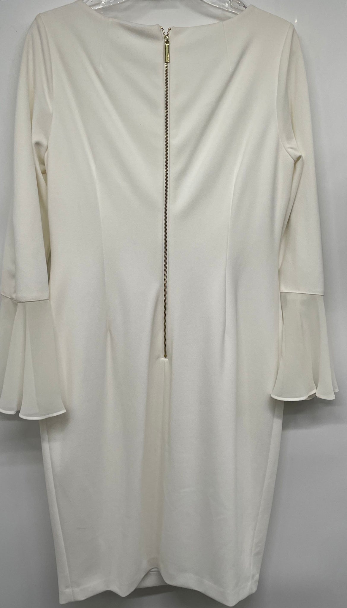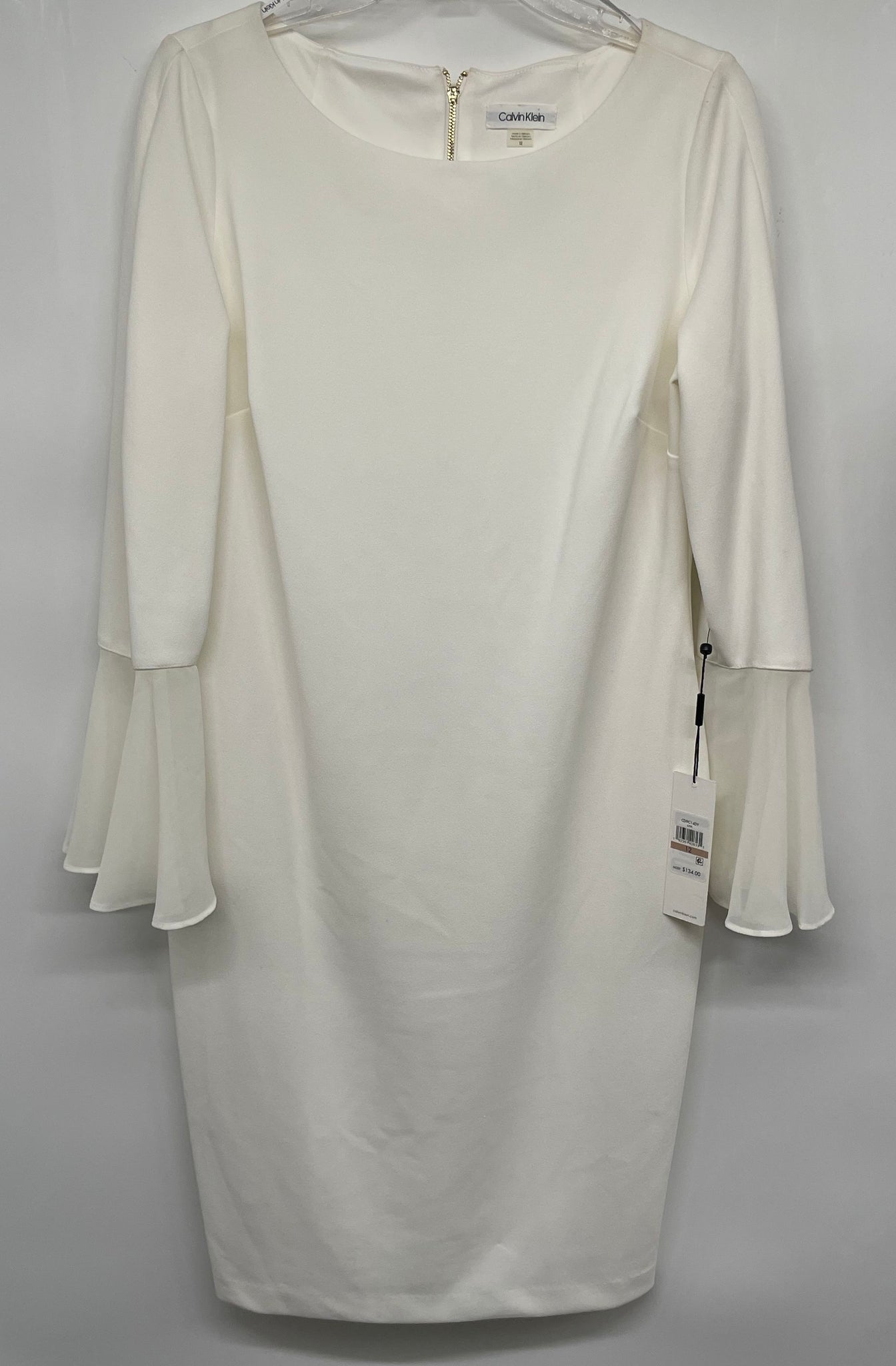 - Description: Calvin Klein Womens Off White Round Neck Bell Sleeve Sheath Dress Sz 12 w/ Tags