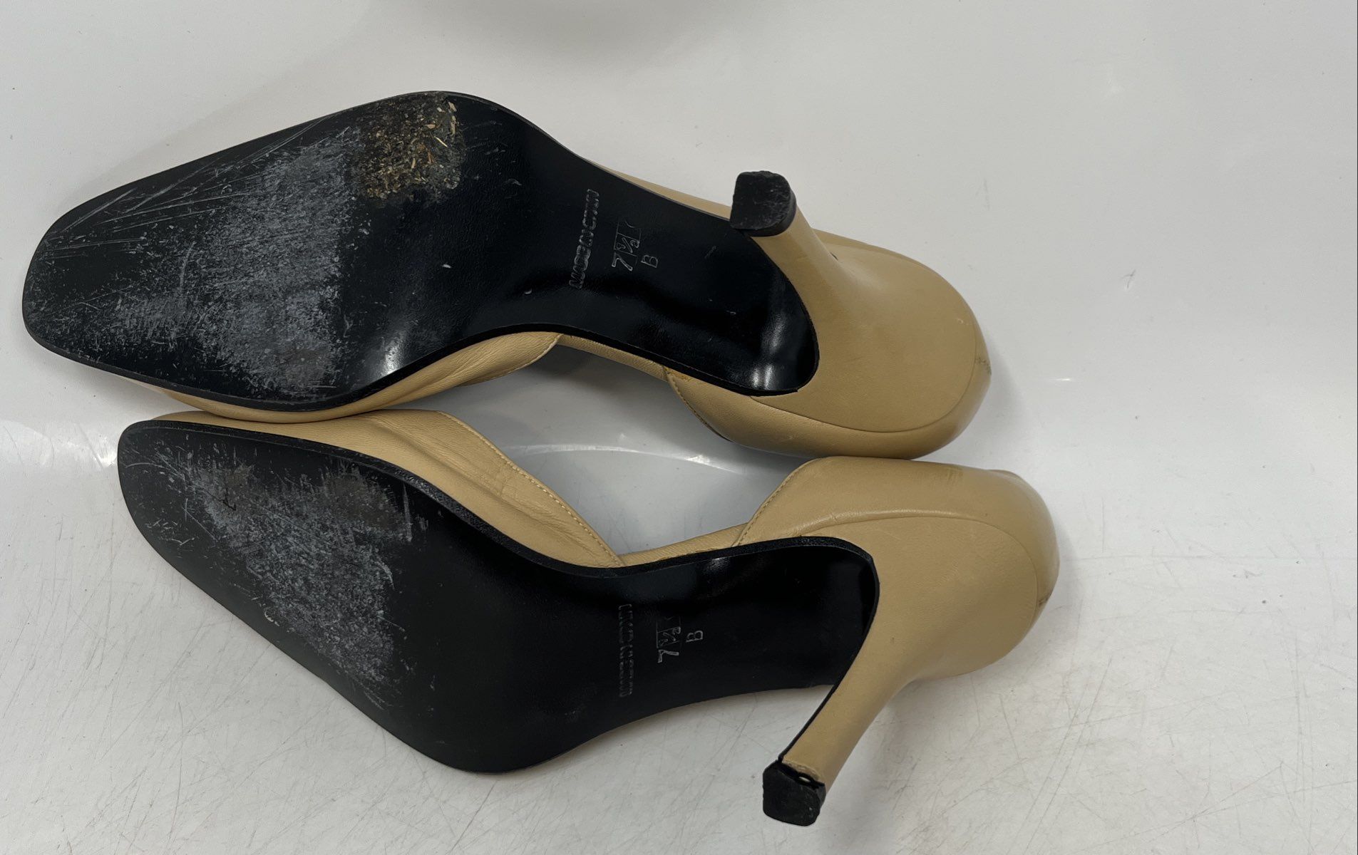 - Description: Charles David Womens Beige Leather Square Toe High Pump Heels Size 7.5B