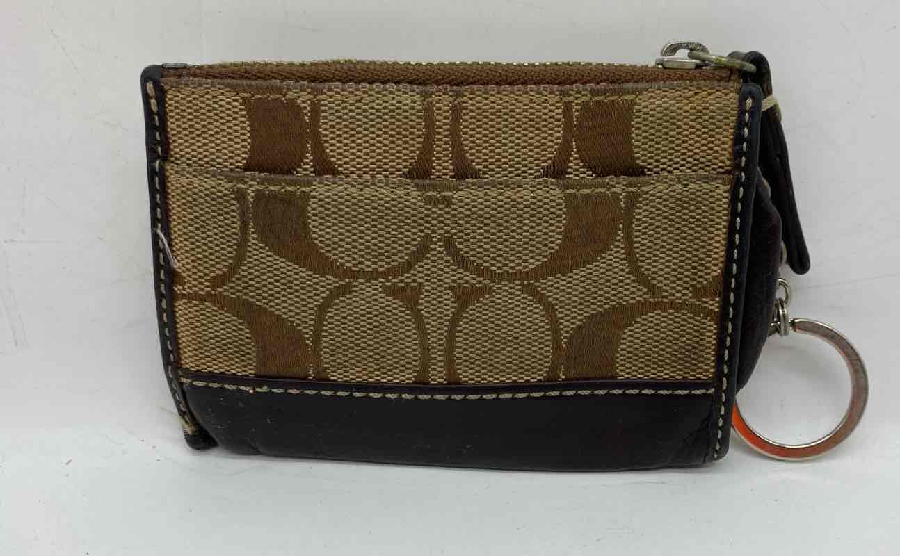 - Description: Coach Womens Brown Beige Monogram Key Chain Card Holder Zipper Coin Wallet