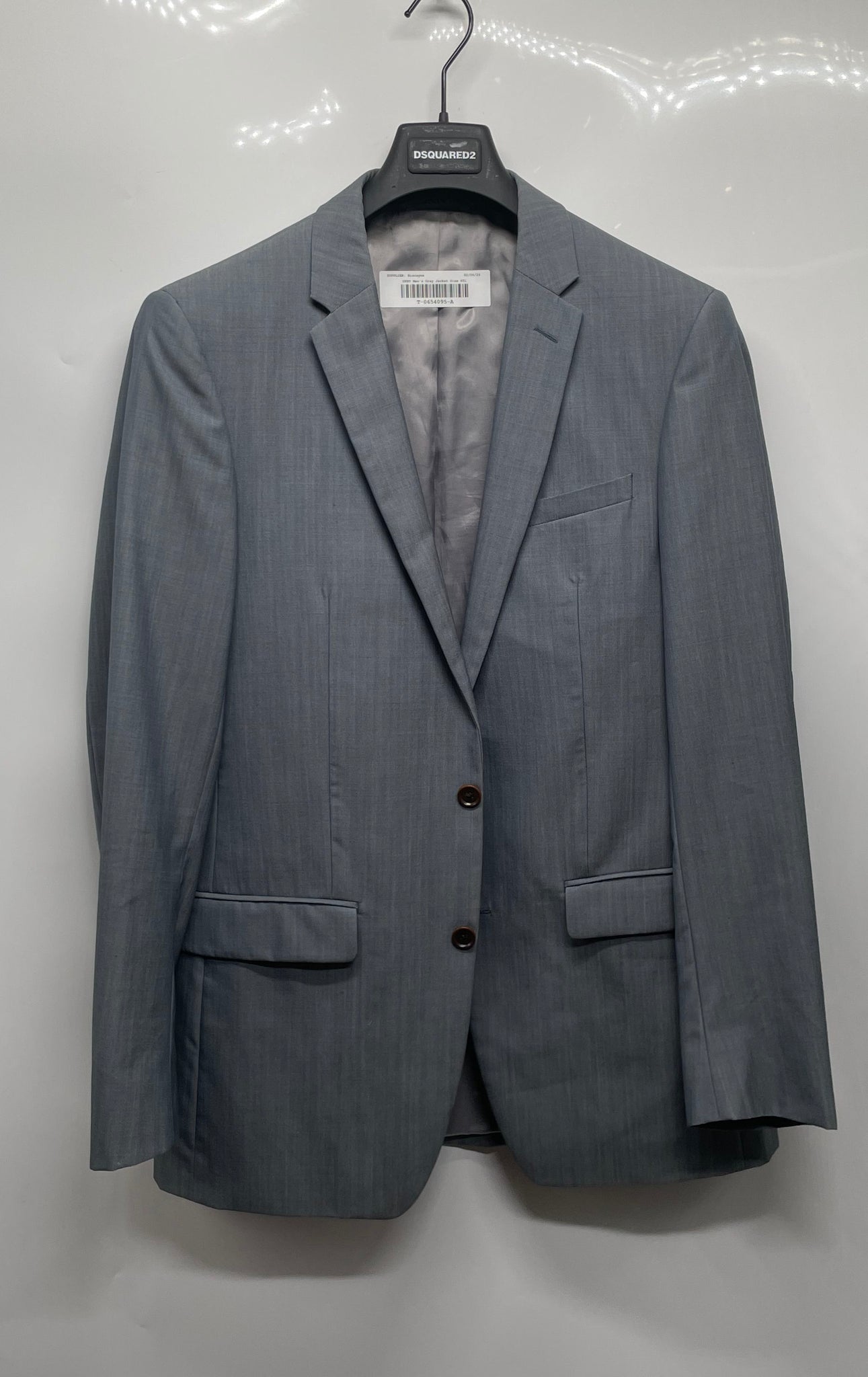 - Description: DKNY Mens Gray Wool Long Sleeve Two-Button Blazer Jacket Size 40L