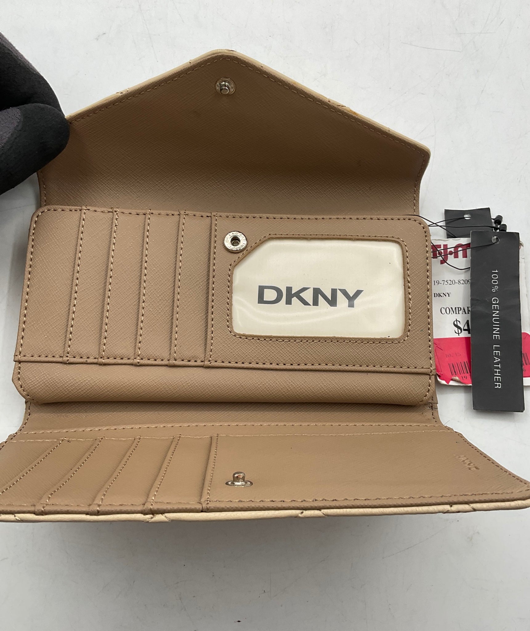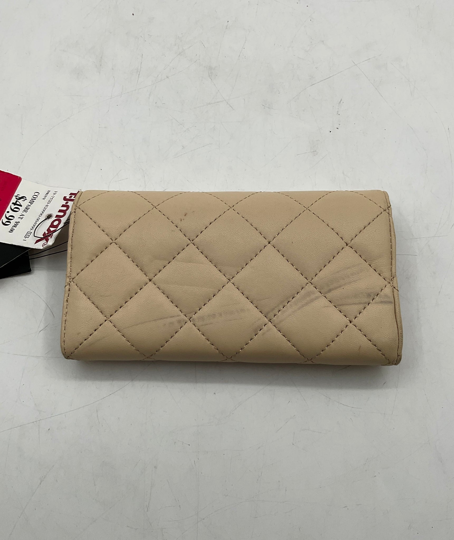 - Description: DKNY Womens Beige Quilted Leather Billfold Clutch Wallet With Tags