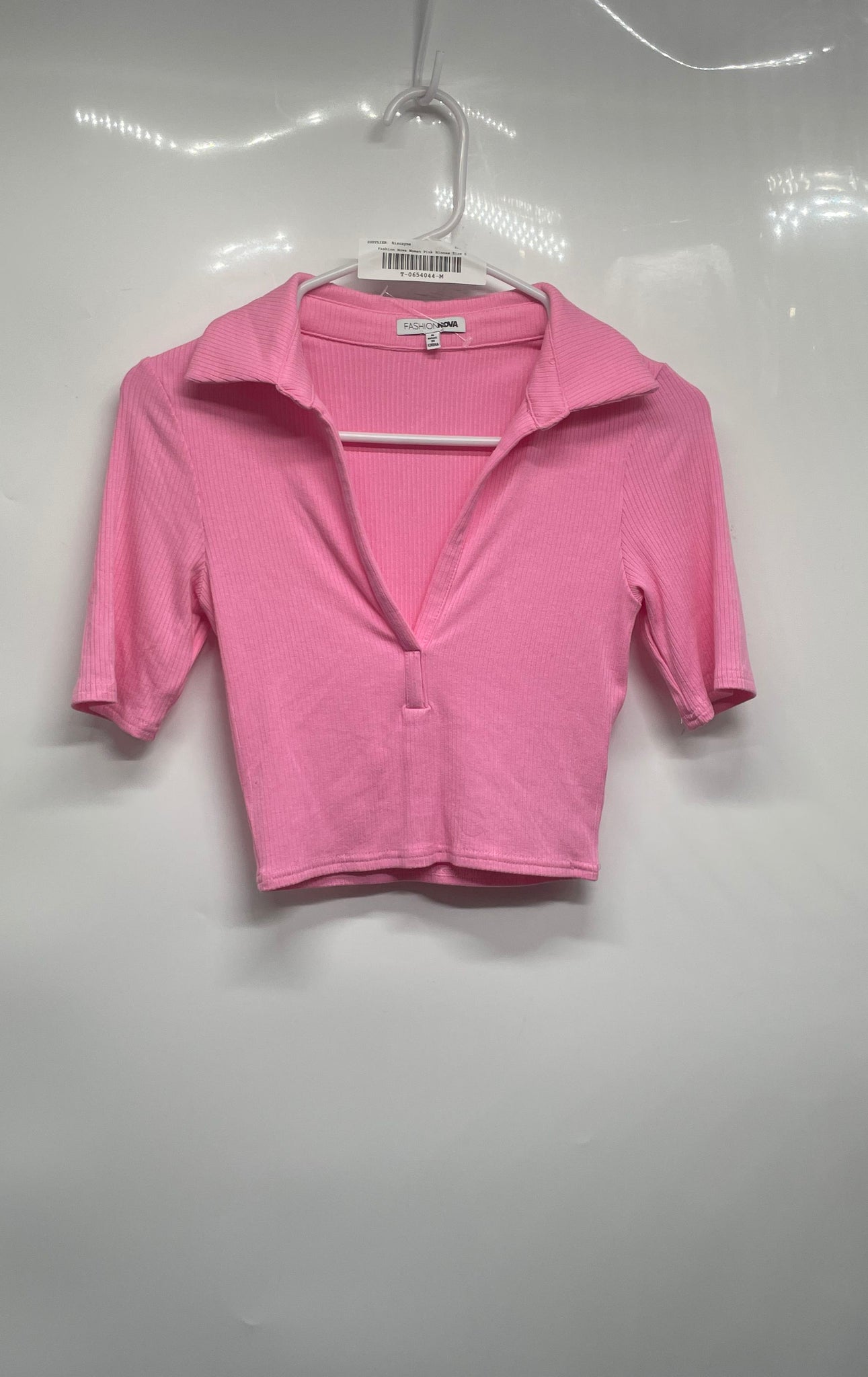 - Description: Fashion Nova Womens Pink Short Sleeve Collared Cropped Blouse Top Size Small