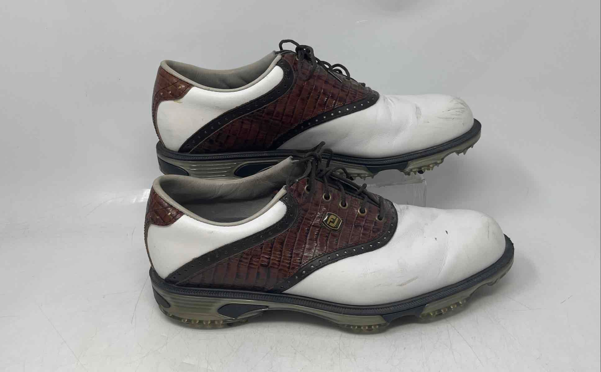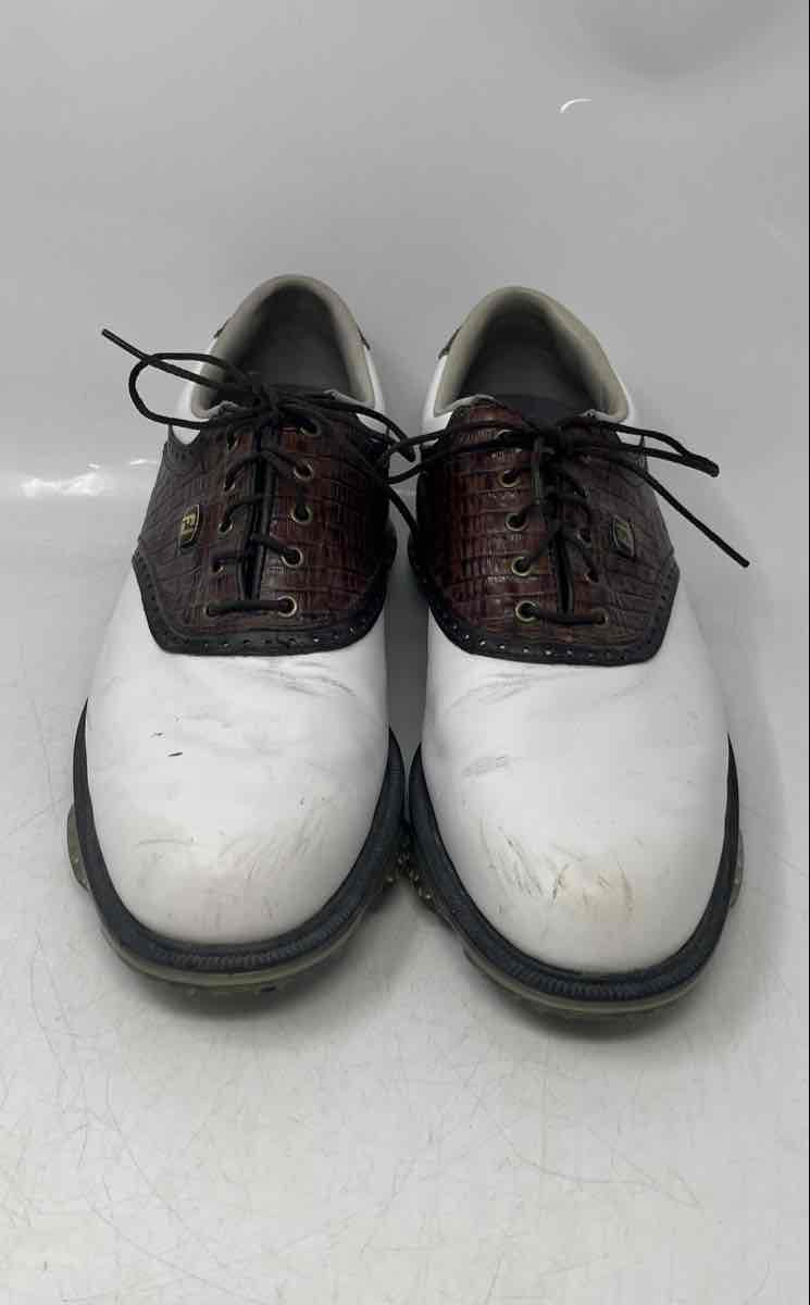 - Description: FootJoy Mens DryJoys Tour 53612 White Brown Leather Lace-Up Golf Shoes Size 9 M