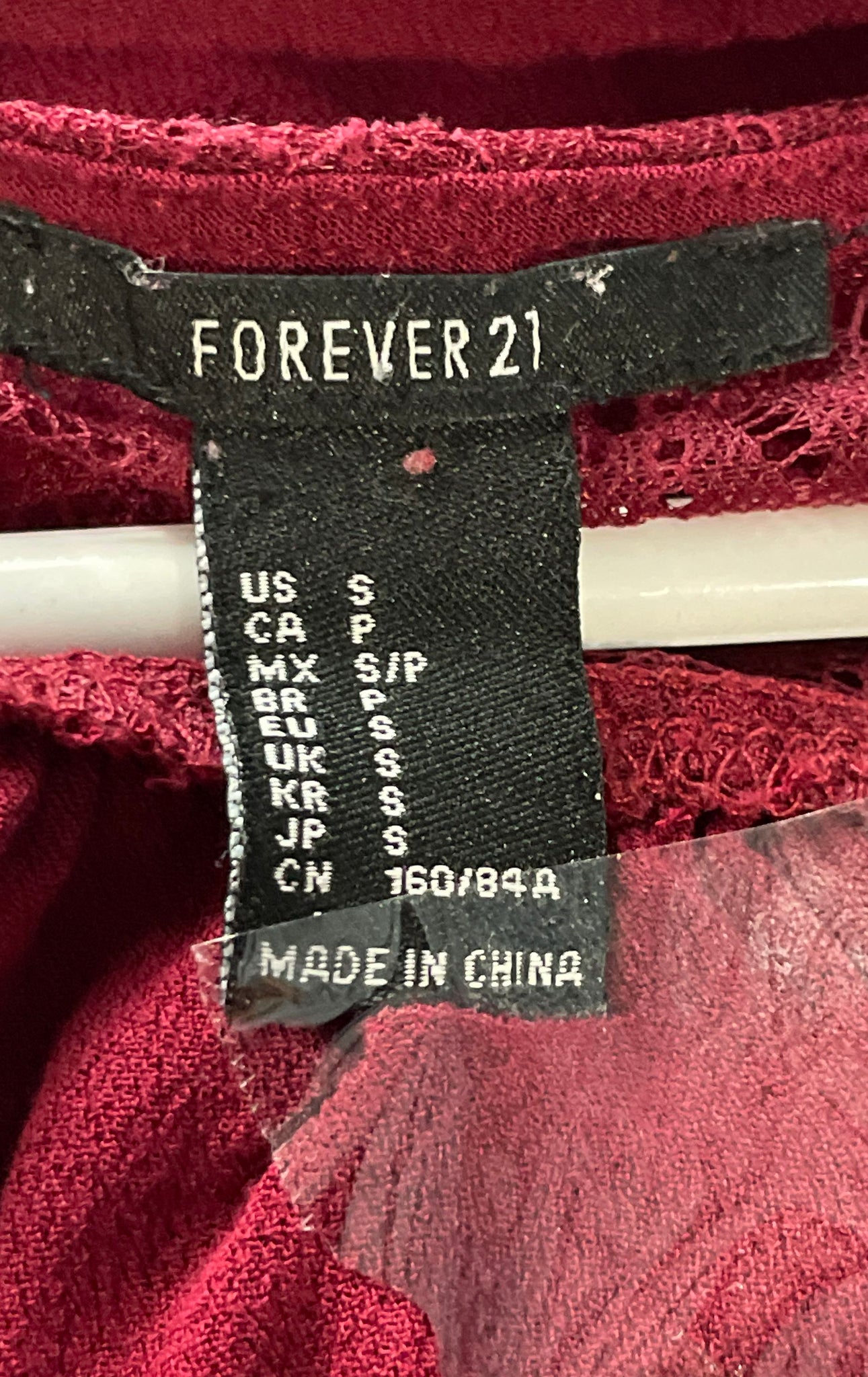 - Description: Forever 21 Womens Red Wine Long Sleeve Lace Sheer Blouse Top Size Small