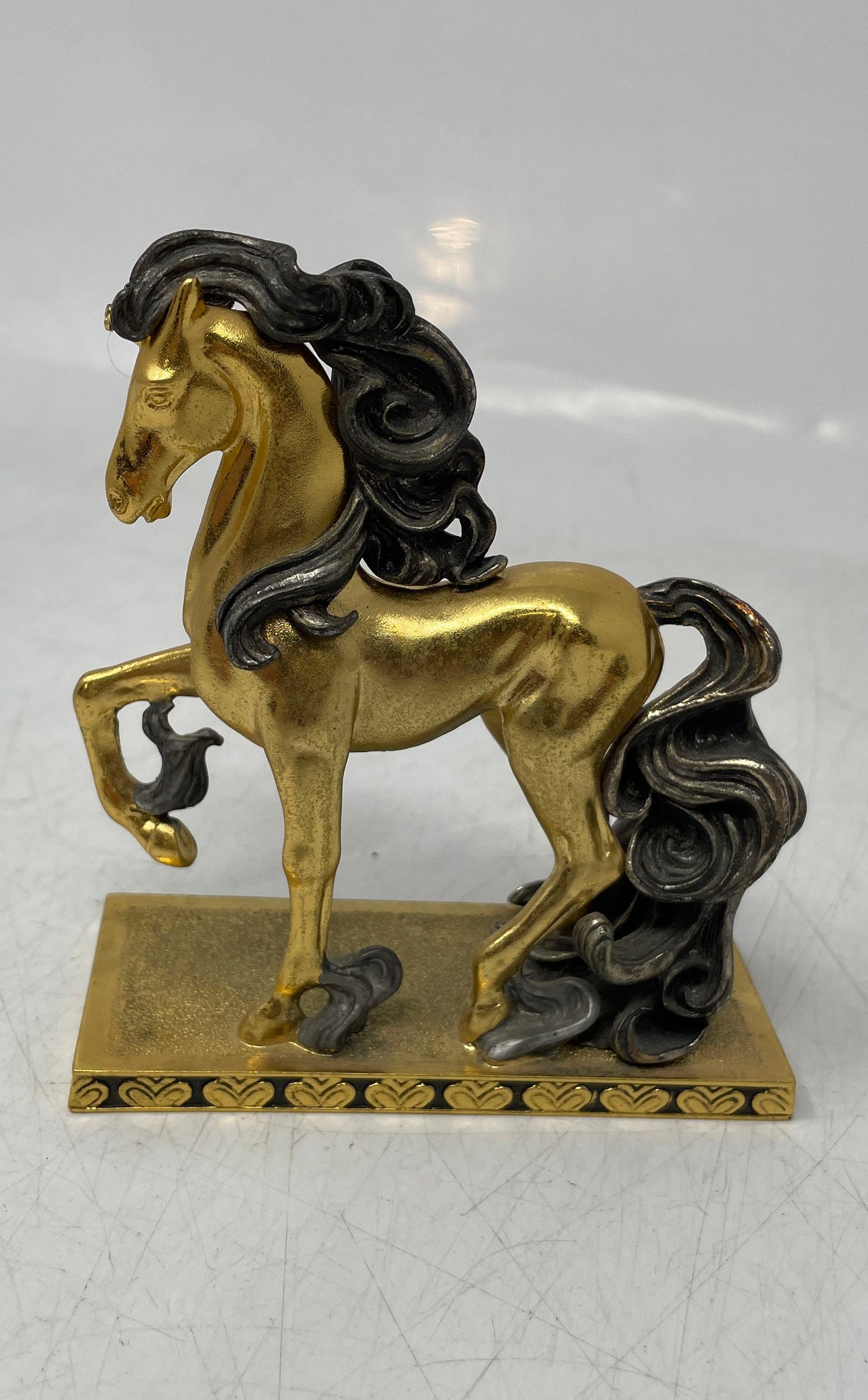 - Description: Gold-Tone And Gray Decorative Unicorn Stand On Rectangular Base Figurine
