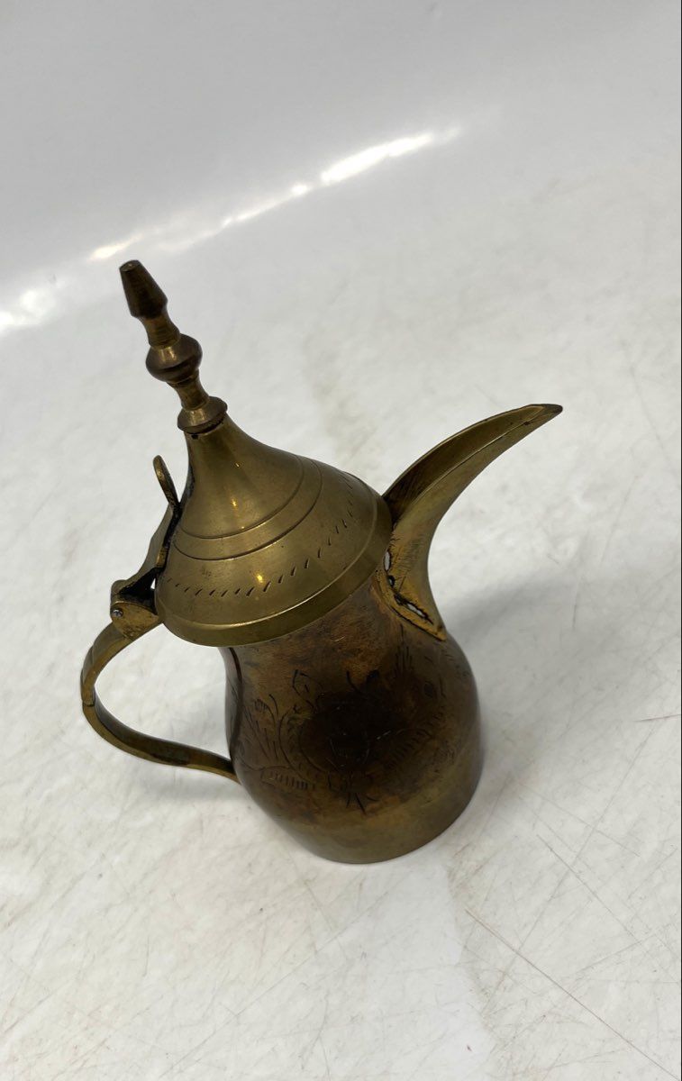 - Description: Golden Tone Engraved Hinged Lid Tableware Dallah Serving Teapot