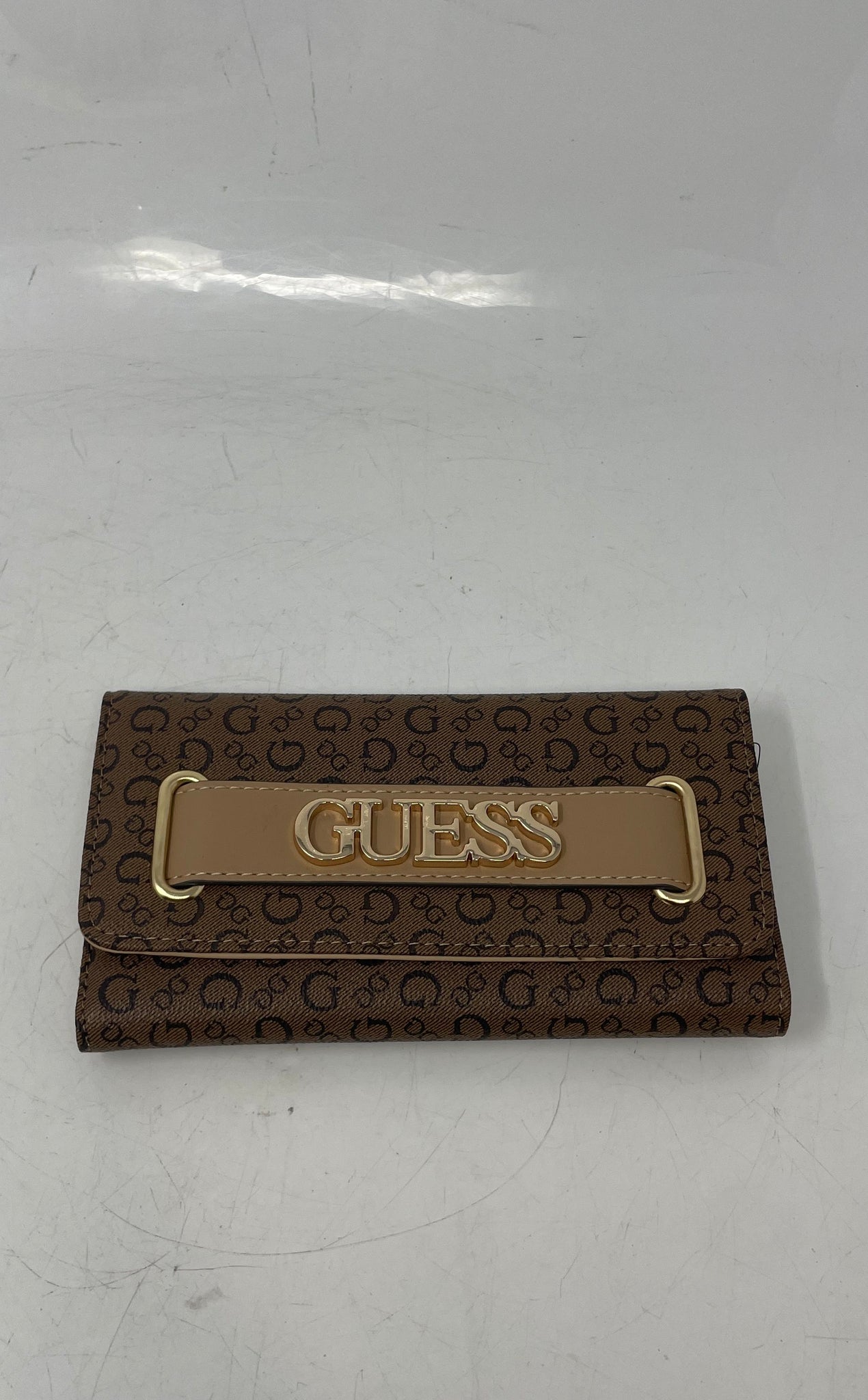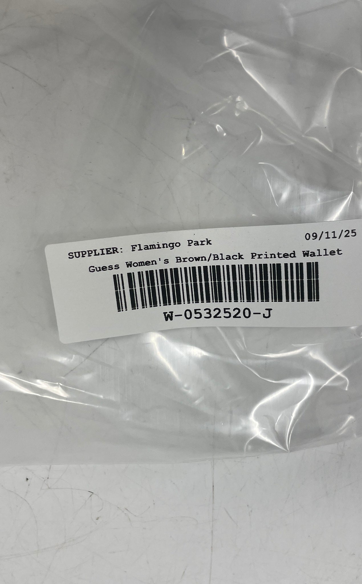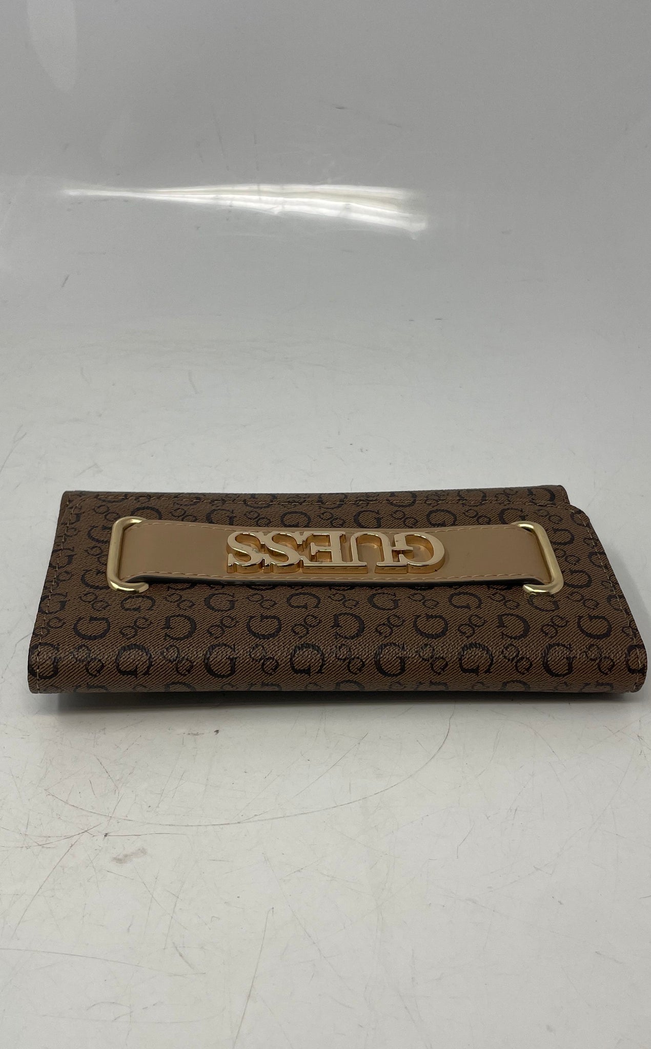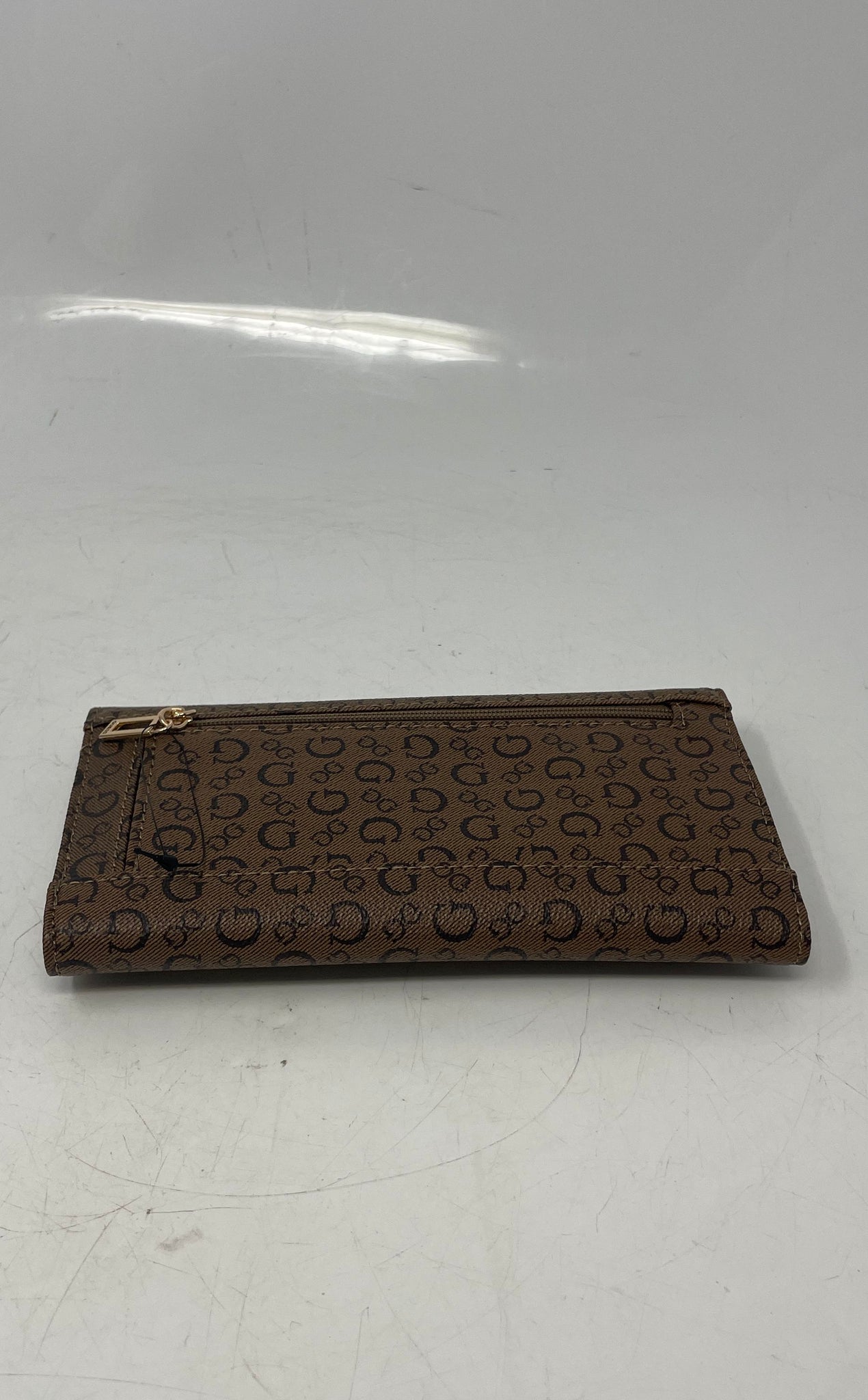 - Description: Guess Womens Brown Black Signature Print ID And Credit Card Slots Trifold Wallet