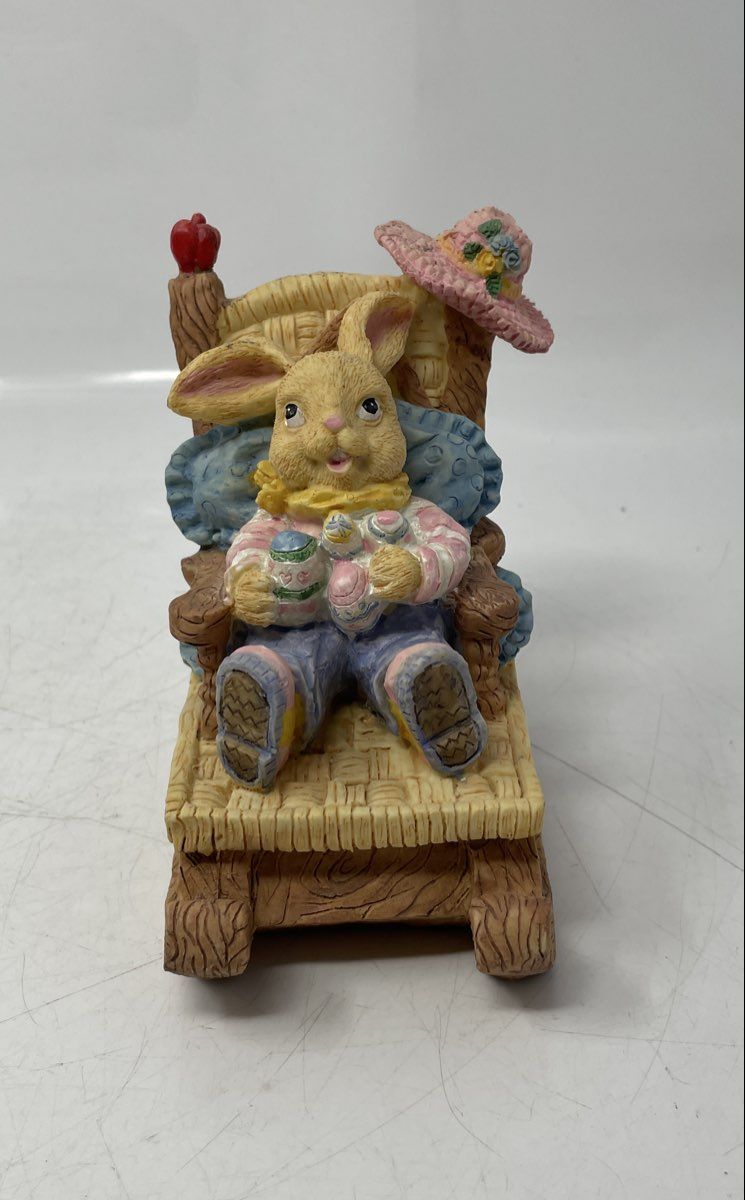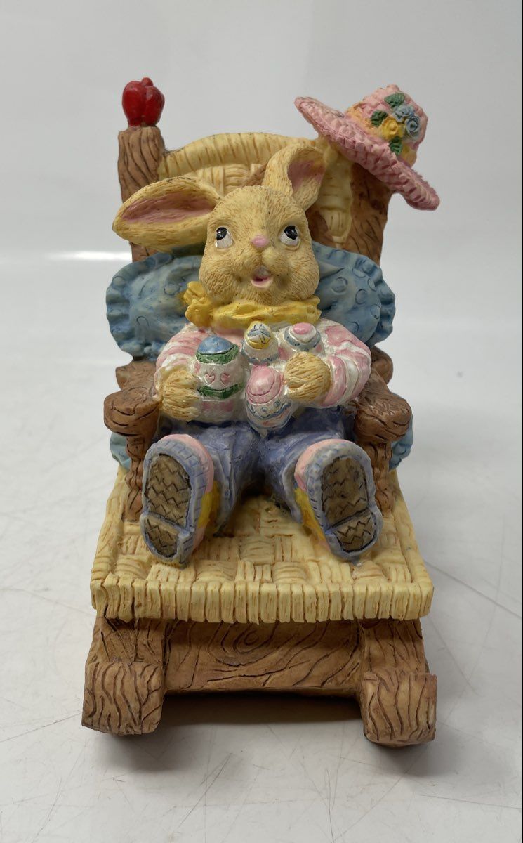 - Description: Home Decorative Charming Bunny Sitting On A Rocking Chair Figurine Collectible