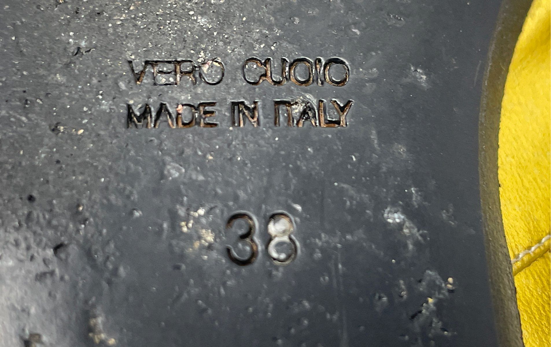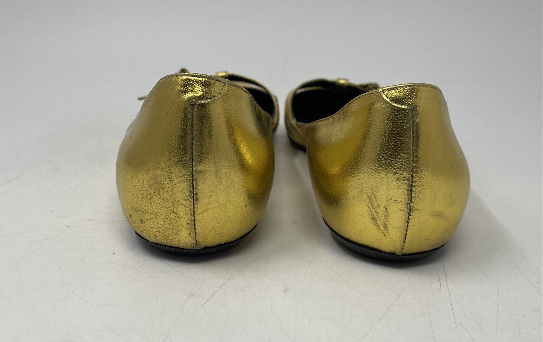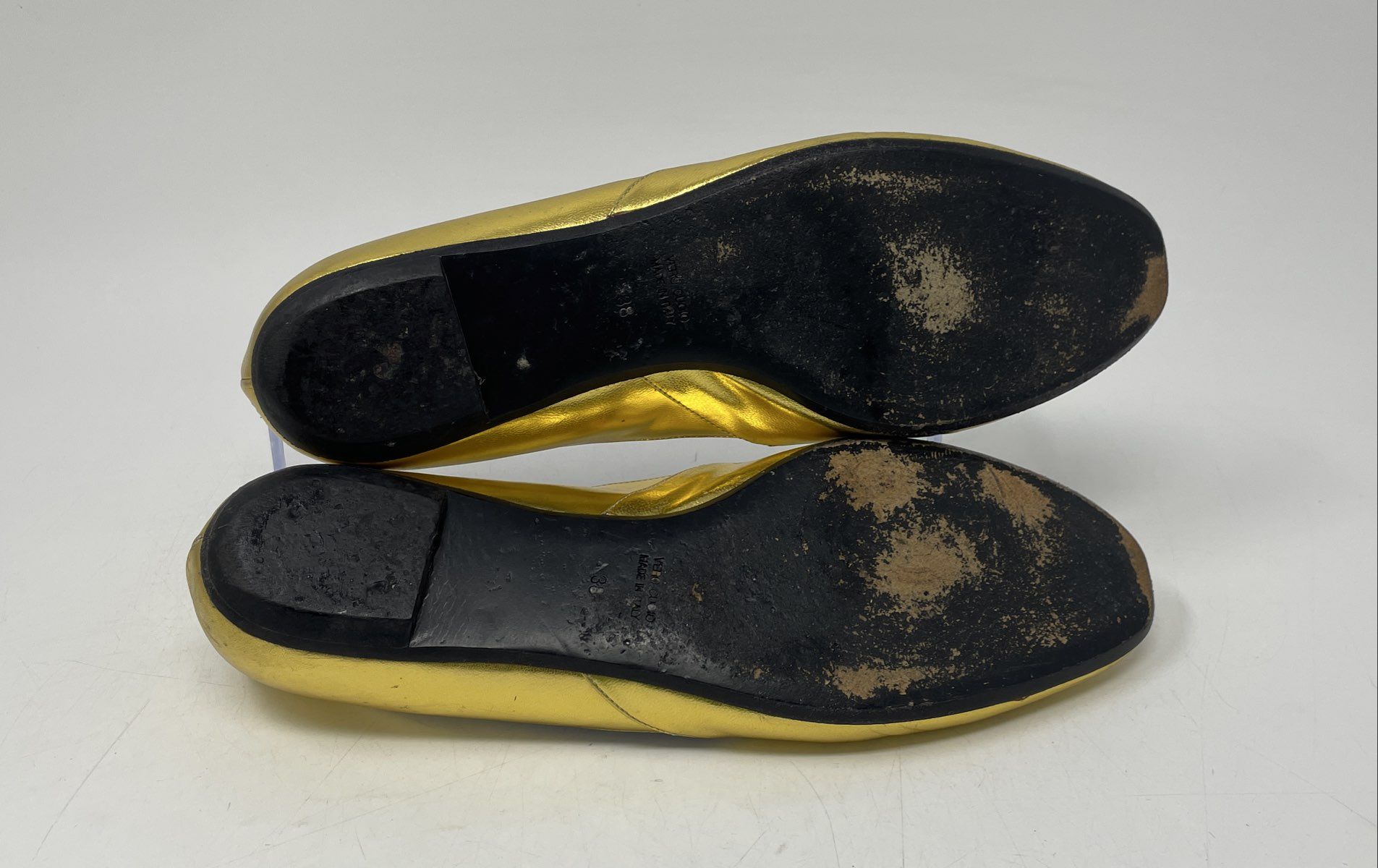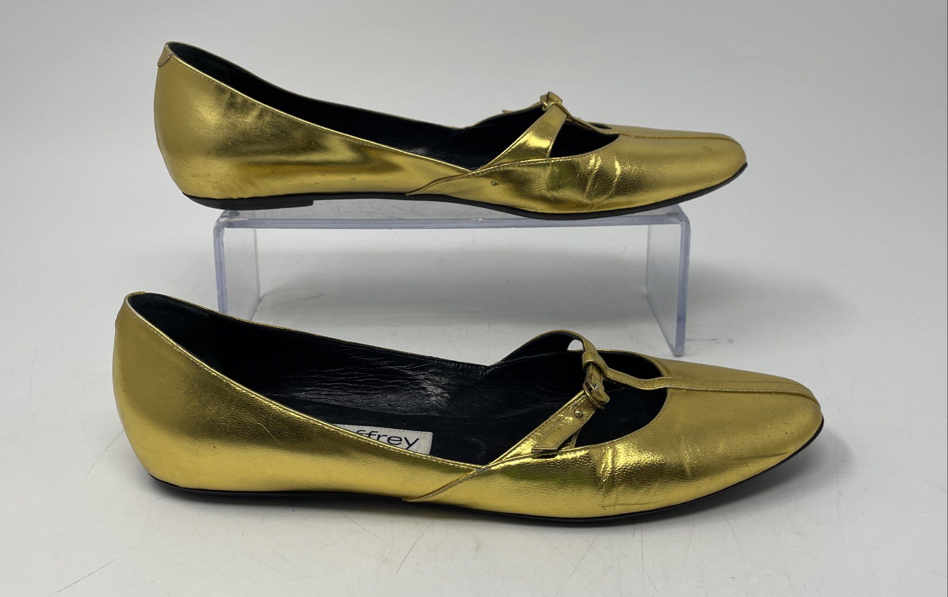 - Description: Jeffrey Womens Gold Leather Round Toe Slip-On Ballet Flats Size 38
