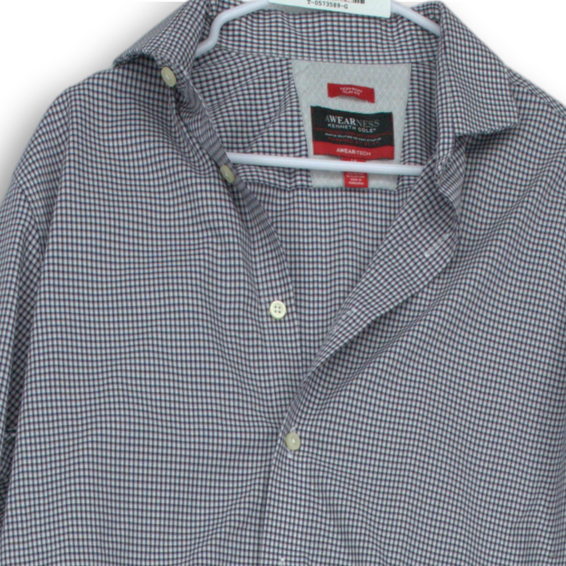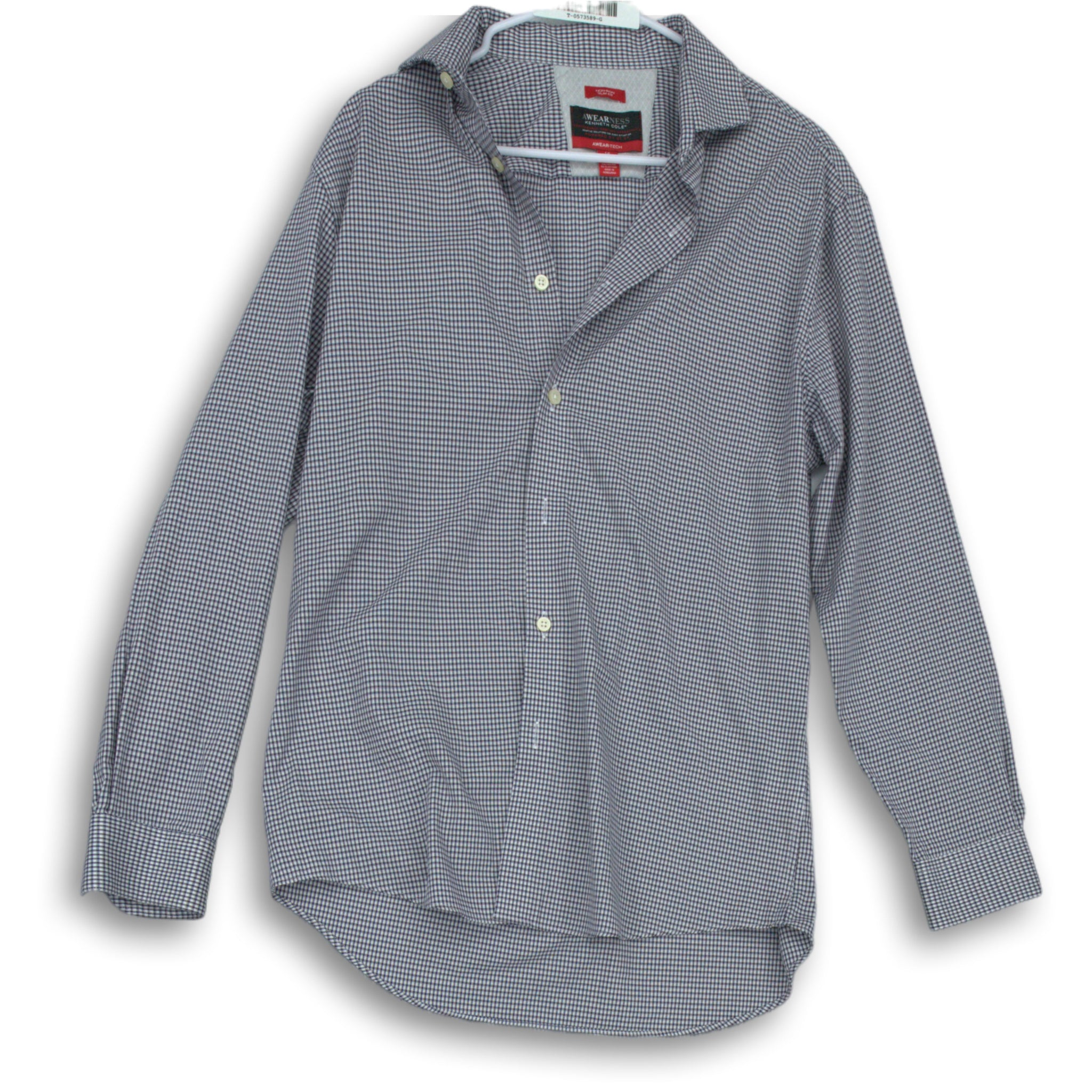 - Description: Kenneth Cole Awearness Mens White Black Check Slim Fit Dress Shirt Size 16 32/33