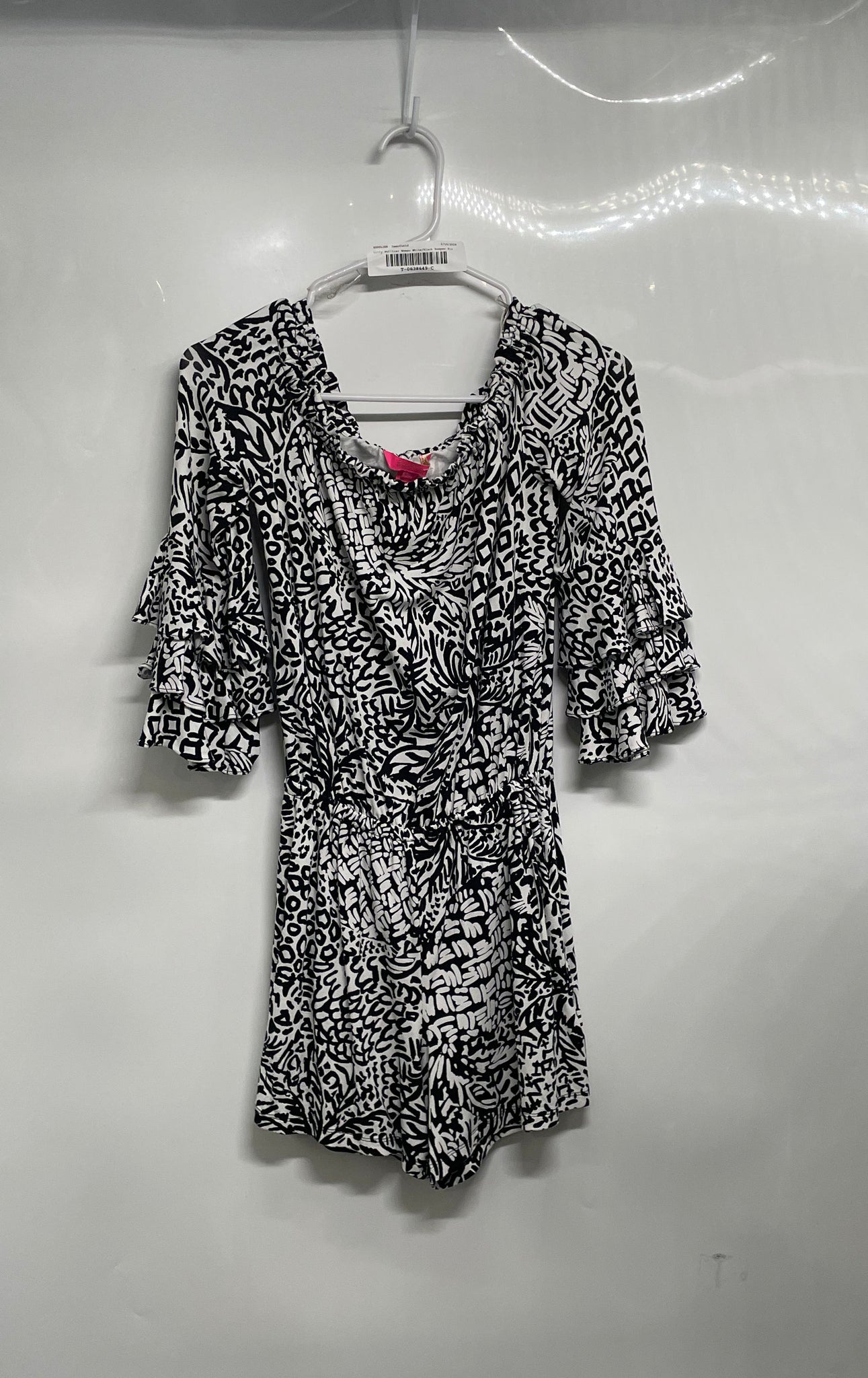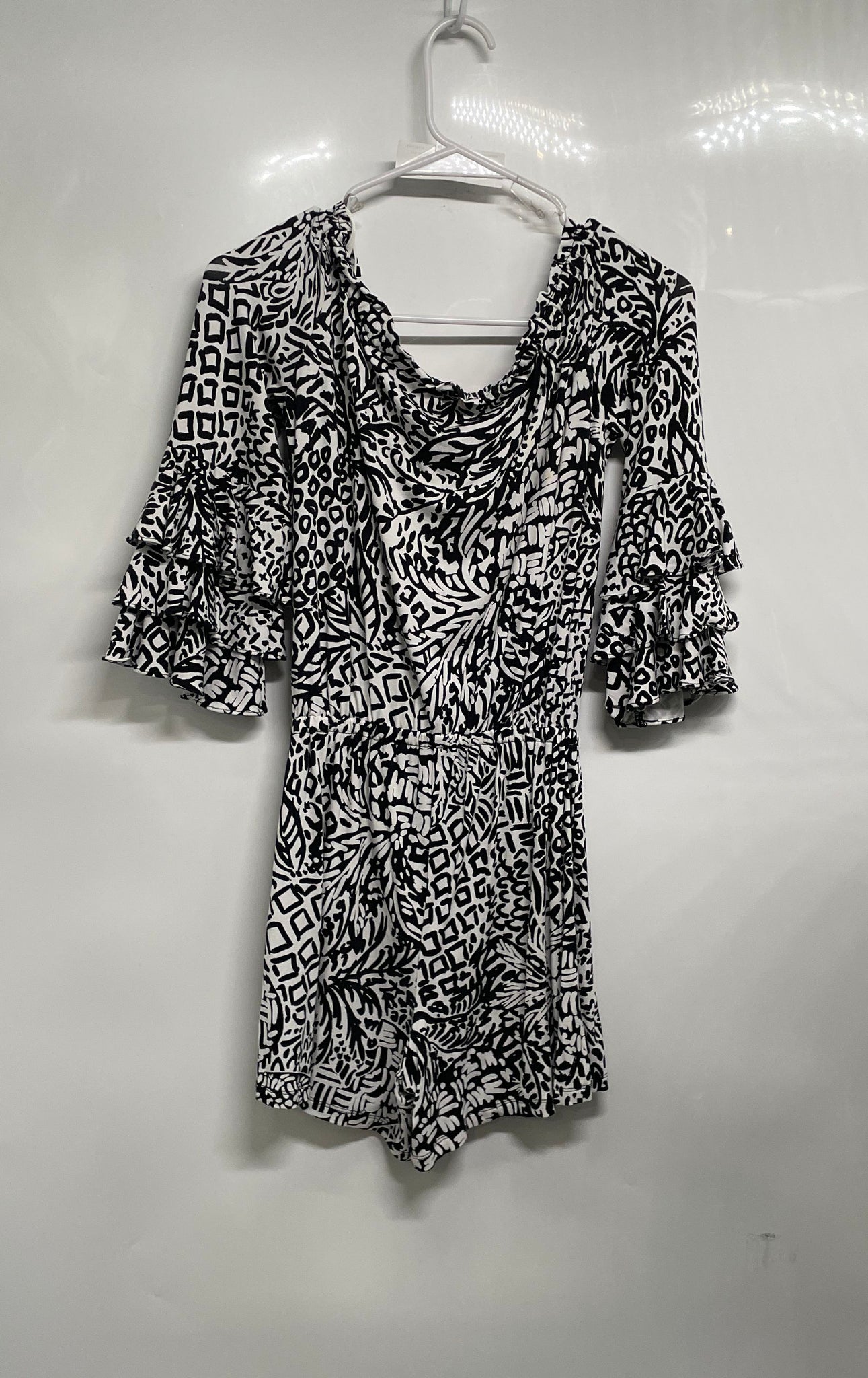 - Description: Lilly Pulitzer Womens Calla White Black Off The Shoulder One-Piece Romper Sz XXS
