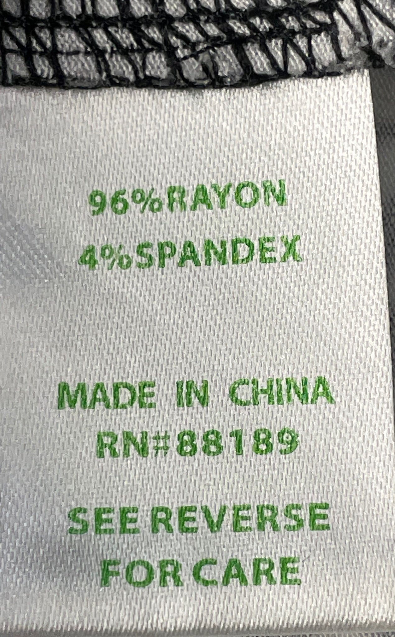 - Material: 96% Rayon, 4% Spandex