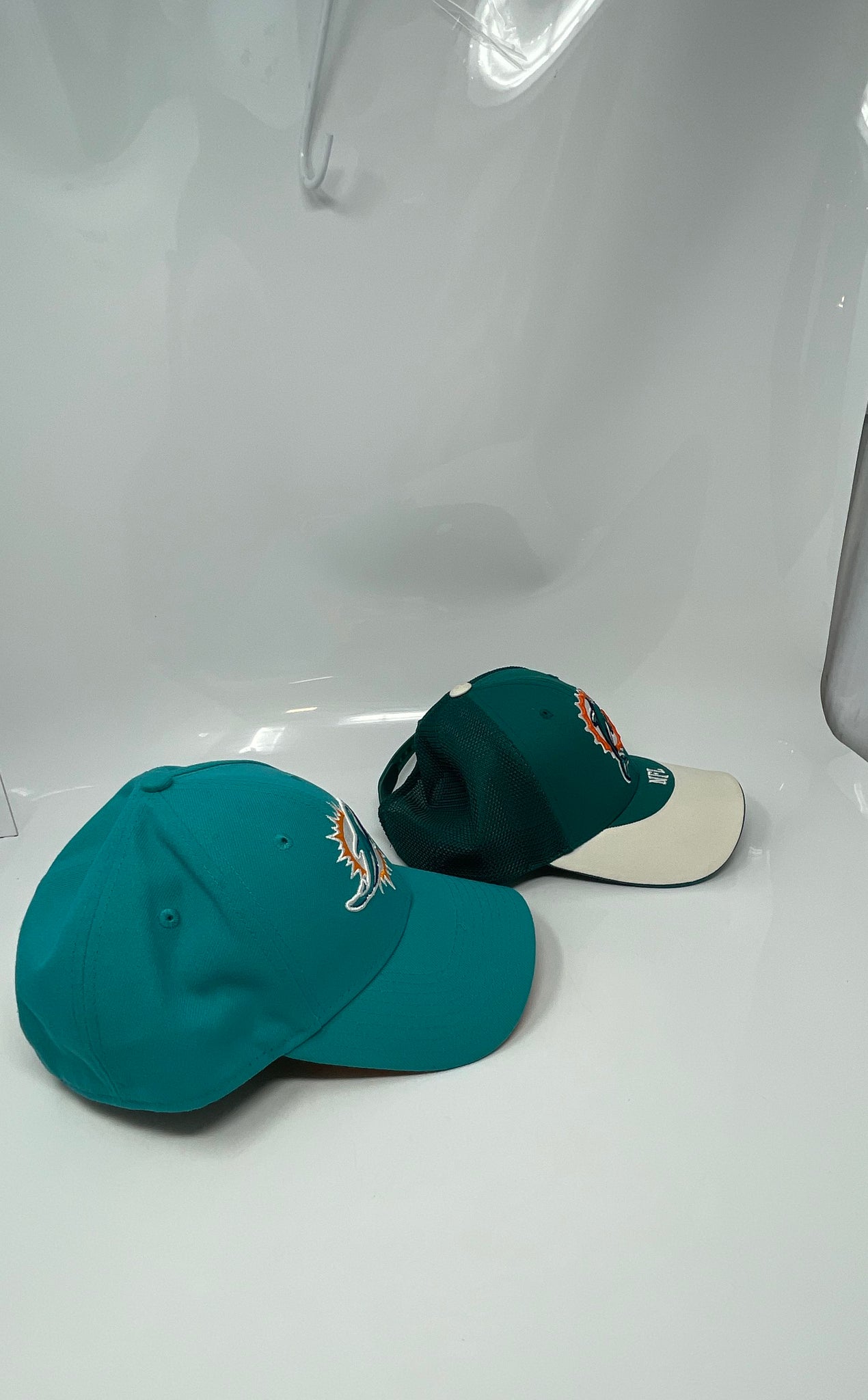 - Description: Lot Of 2 Assorted Mens Turquoise Orange NFL Miami Dolphins Baseball Caps