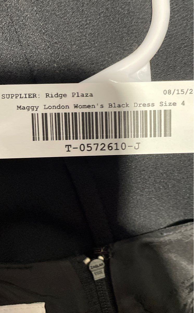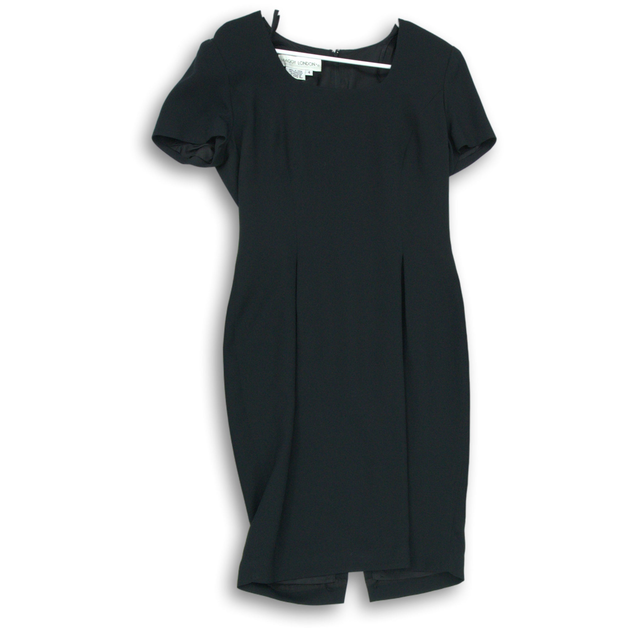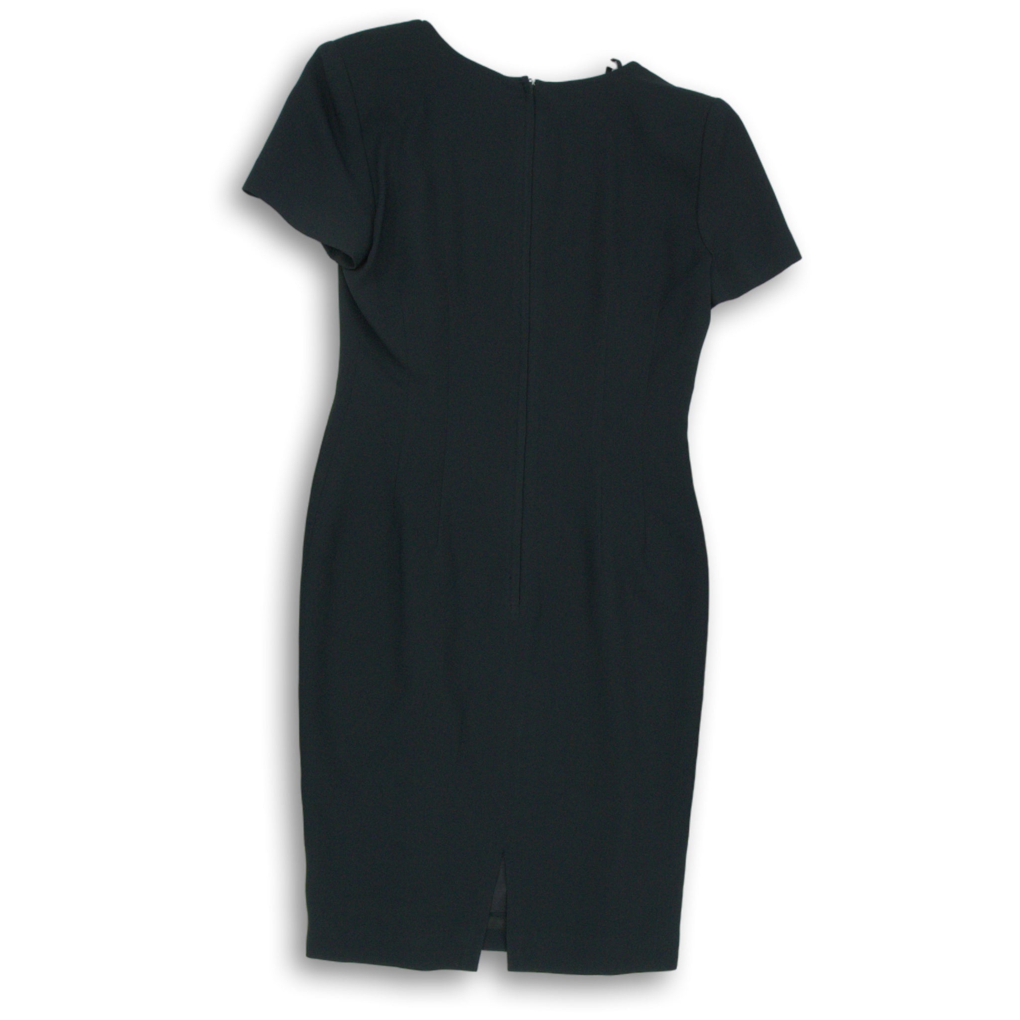- Description: Maggy London Womens Black Short Sleeve Round Neck Back Zip Sheath Dress Size 4