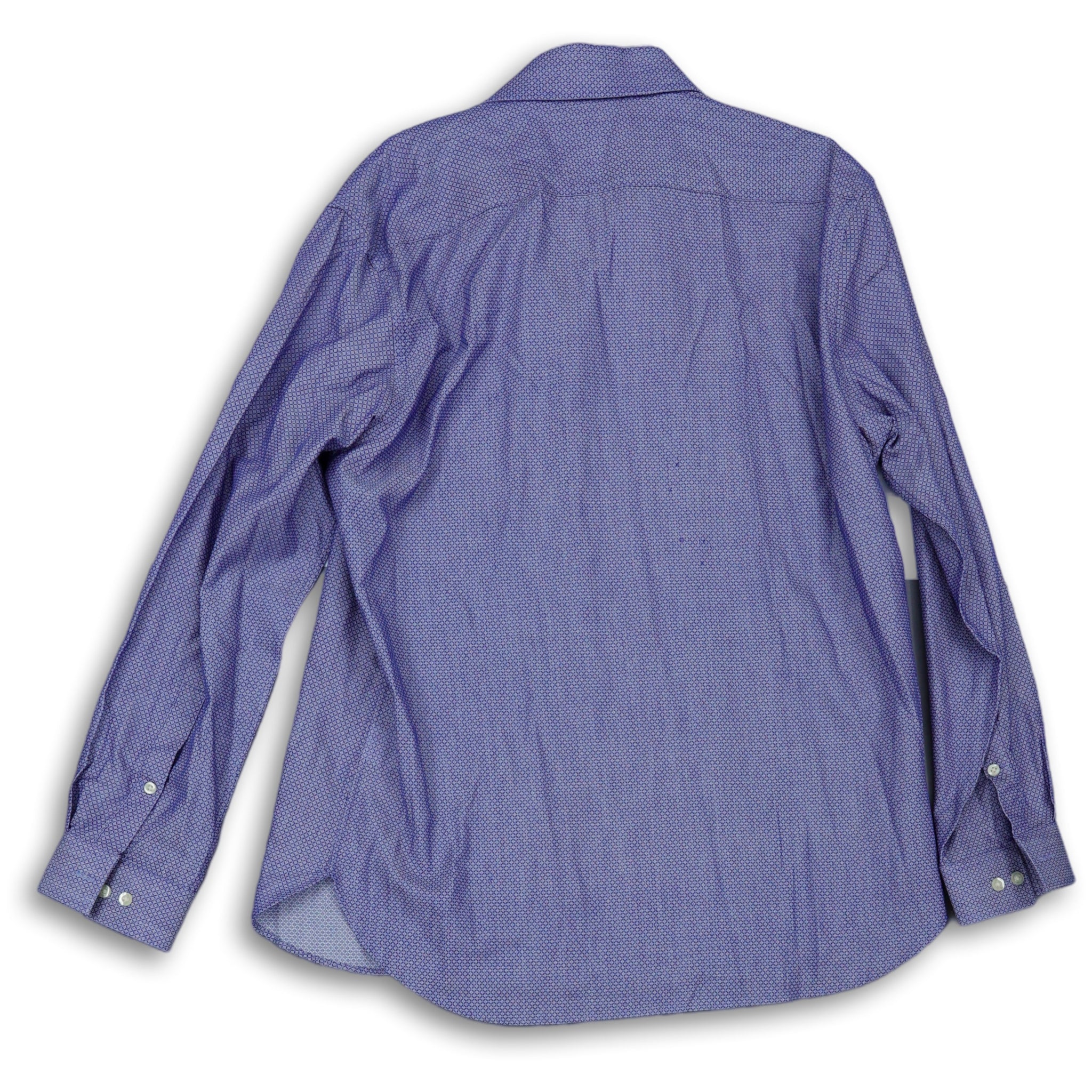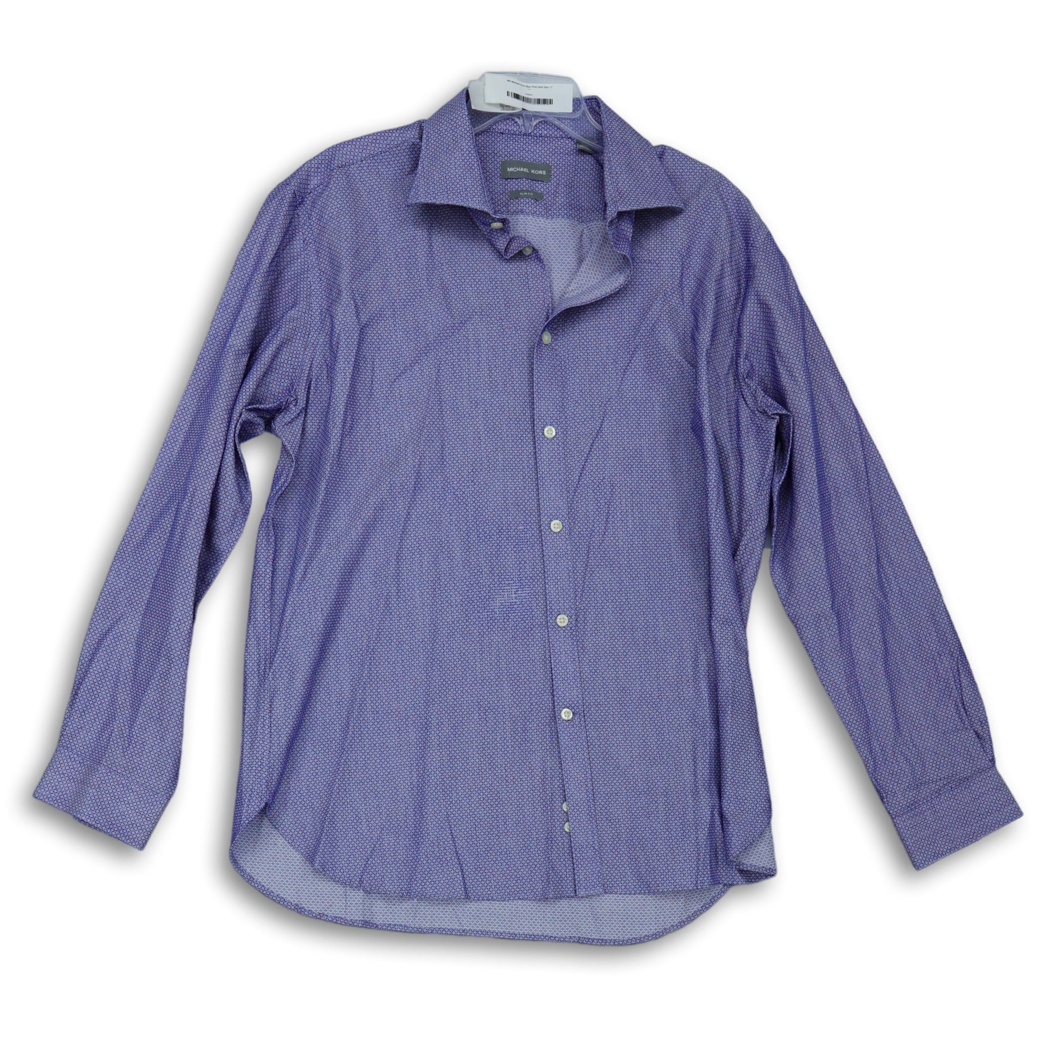 - Description: Michael Kors Mens Blue Geometric Slim Fit Long Sleeve Button Up Shirt Size 17