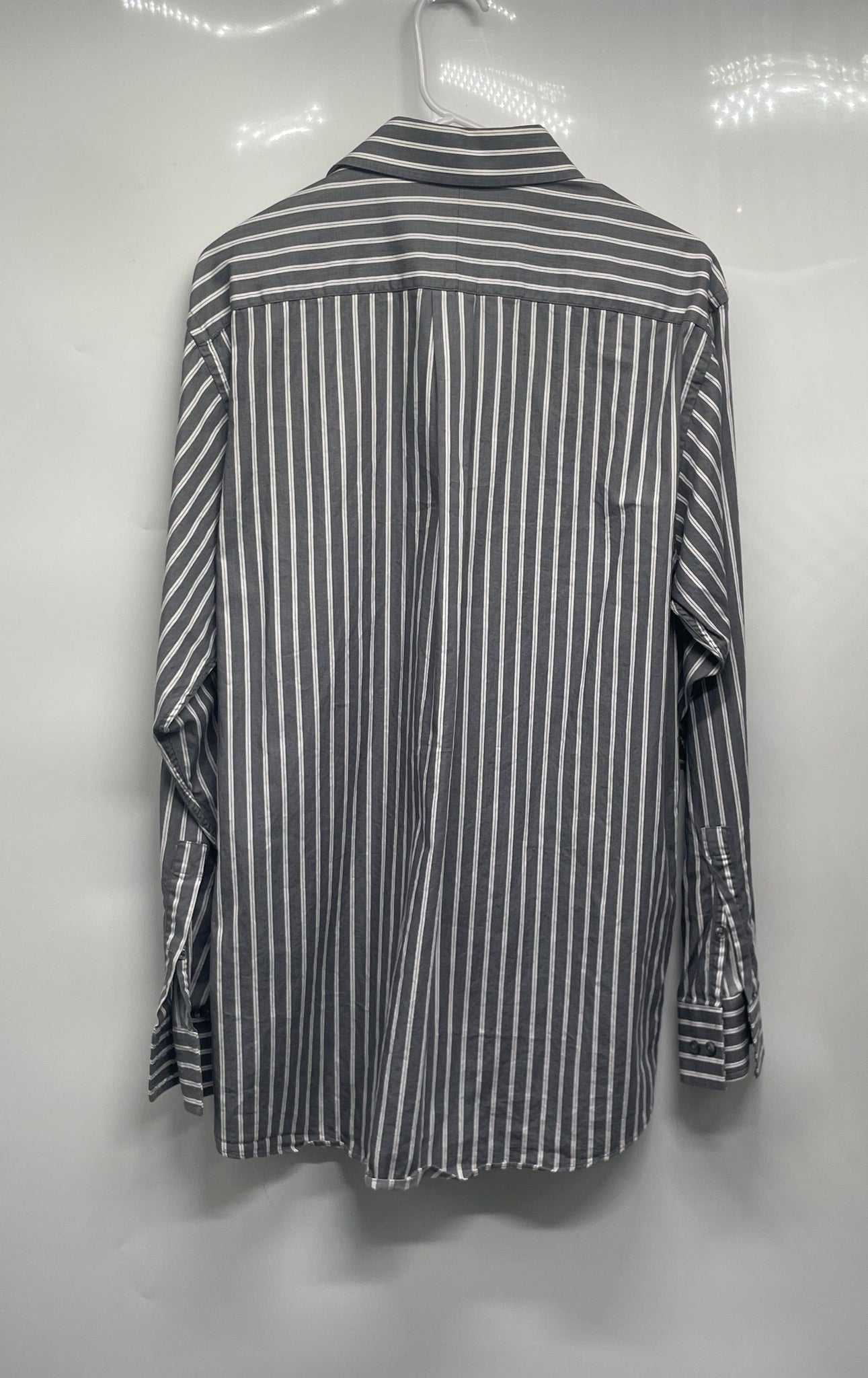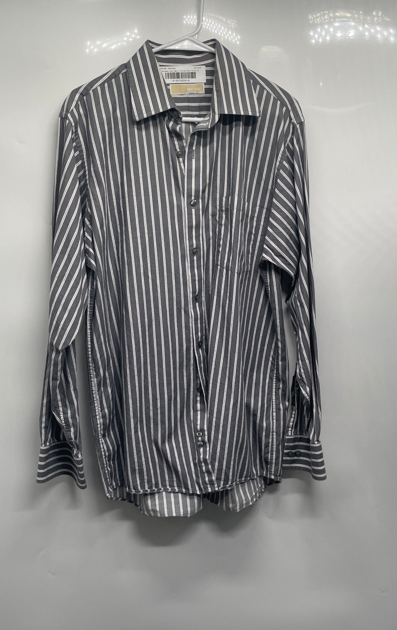 - Description: Michael Kors Mens Gray White Striped Collared Long Sleeve Dress Shirt Size 16