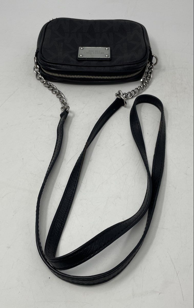 - Description: Michael Kors Womens Jet Set Black Signature Pebble Leather Crossbody Bag