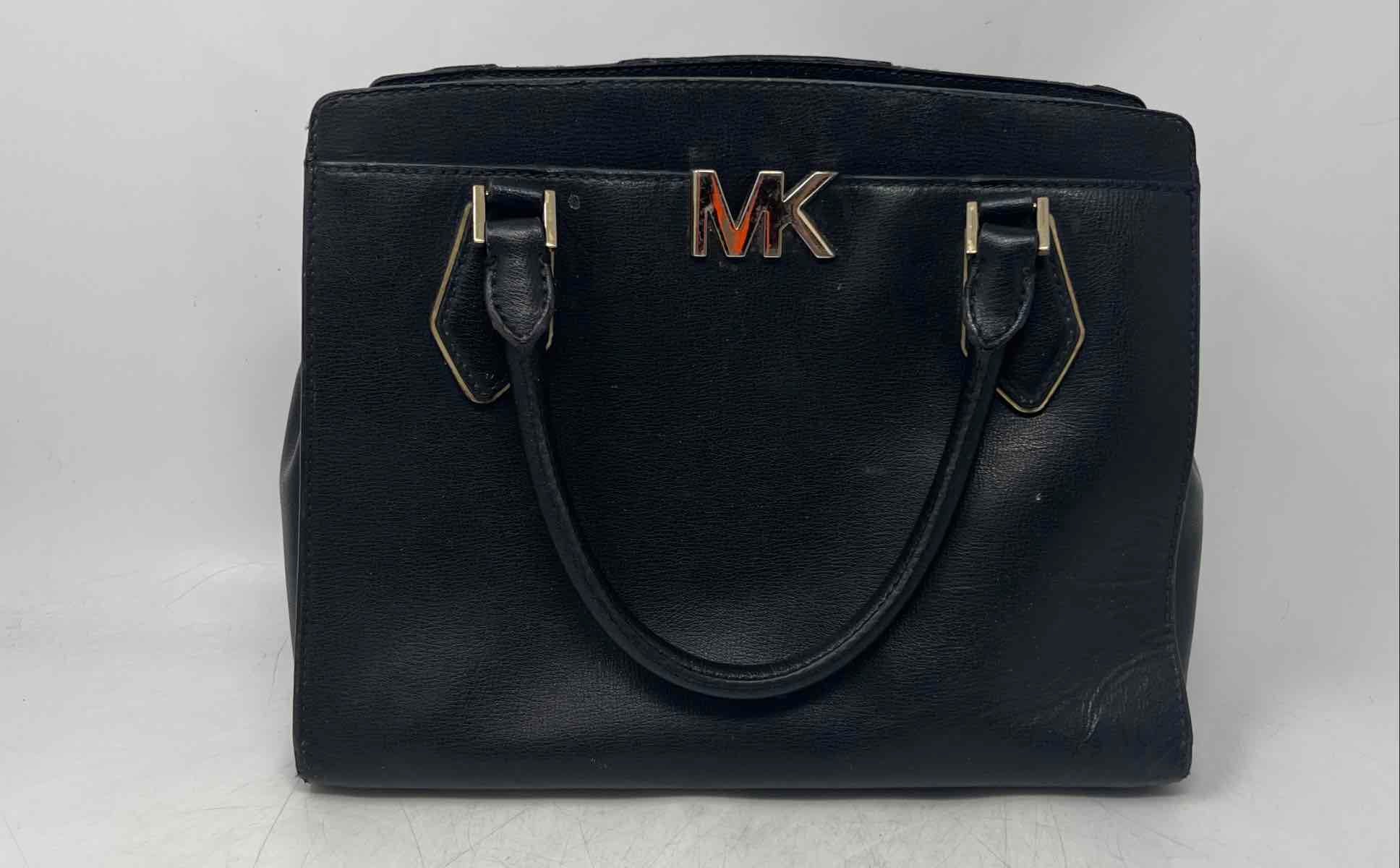 - Description: Michael Kors Womens Mott Black Leather Double Handle Inner Pocket Satchel Bag