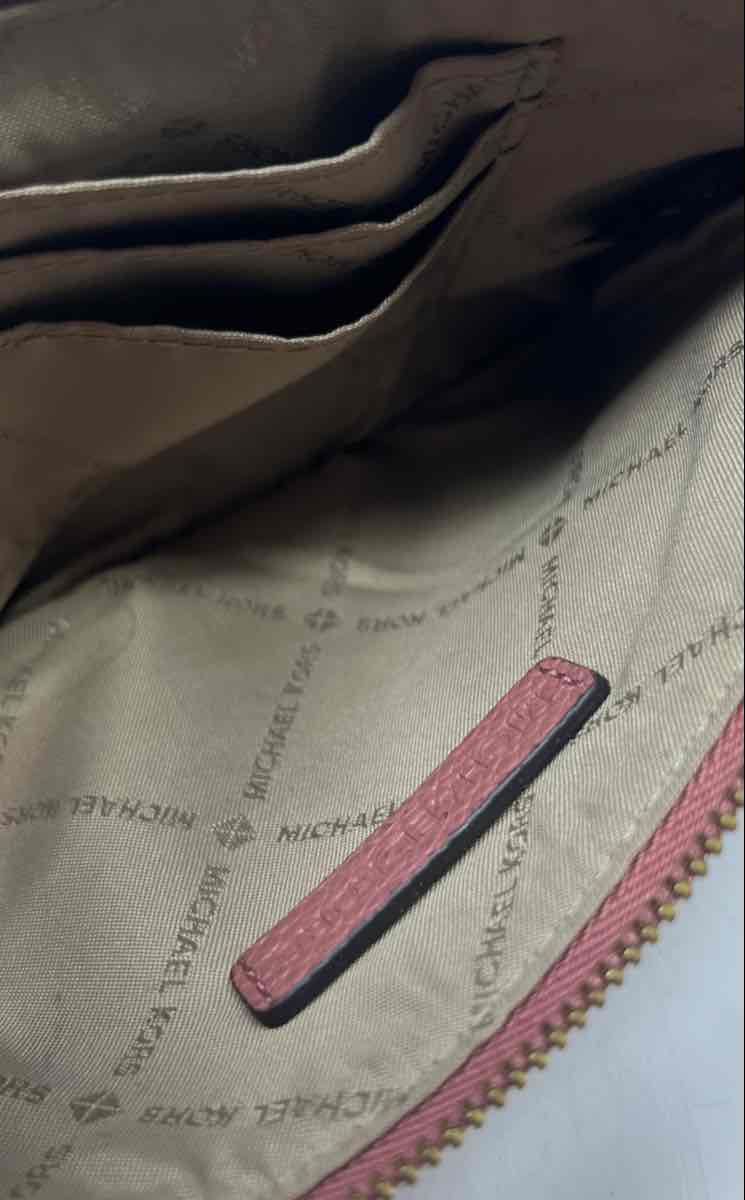 - Description: Michael Kors Womens Pink Pebbled Leather Zip Top Small Wristlet Wallet