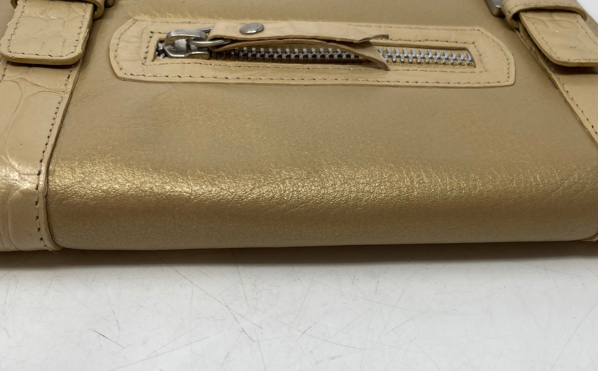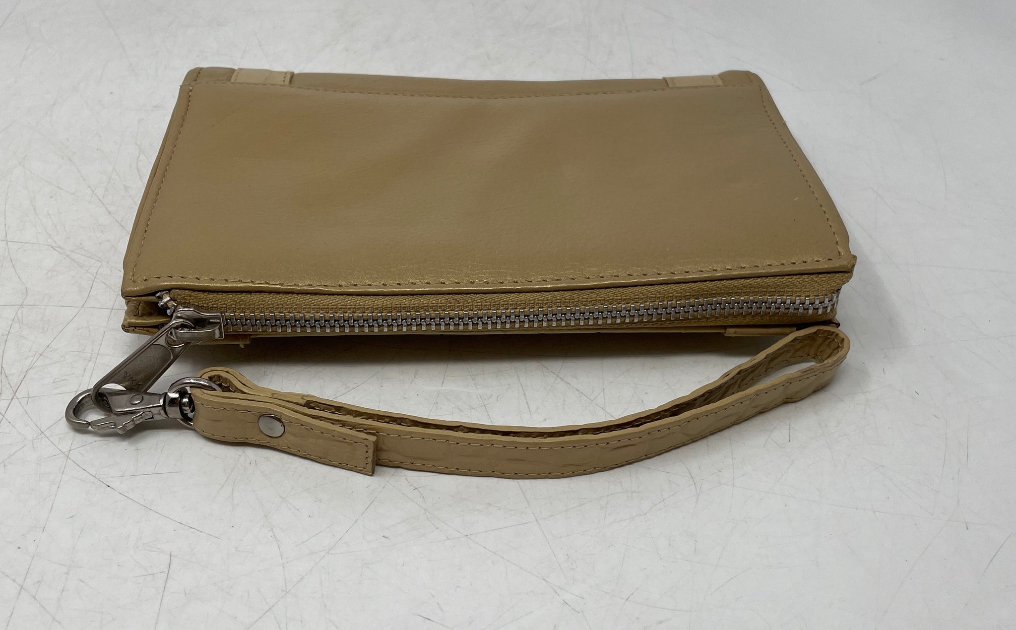 - Description: Michael Rome Womens Beige Leather Crocodile Embossed Mini Wristlet Wallet