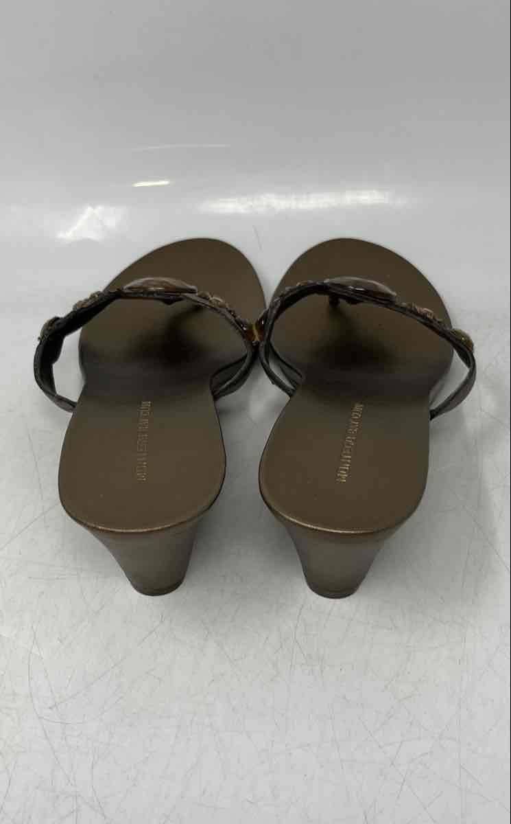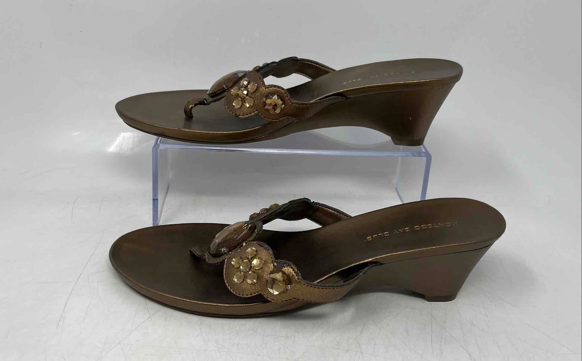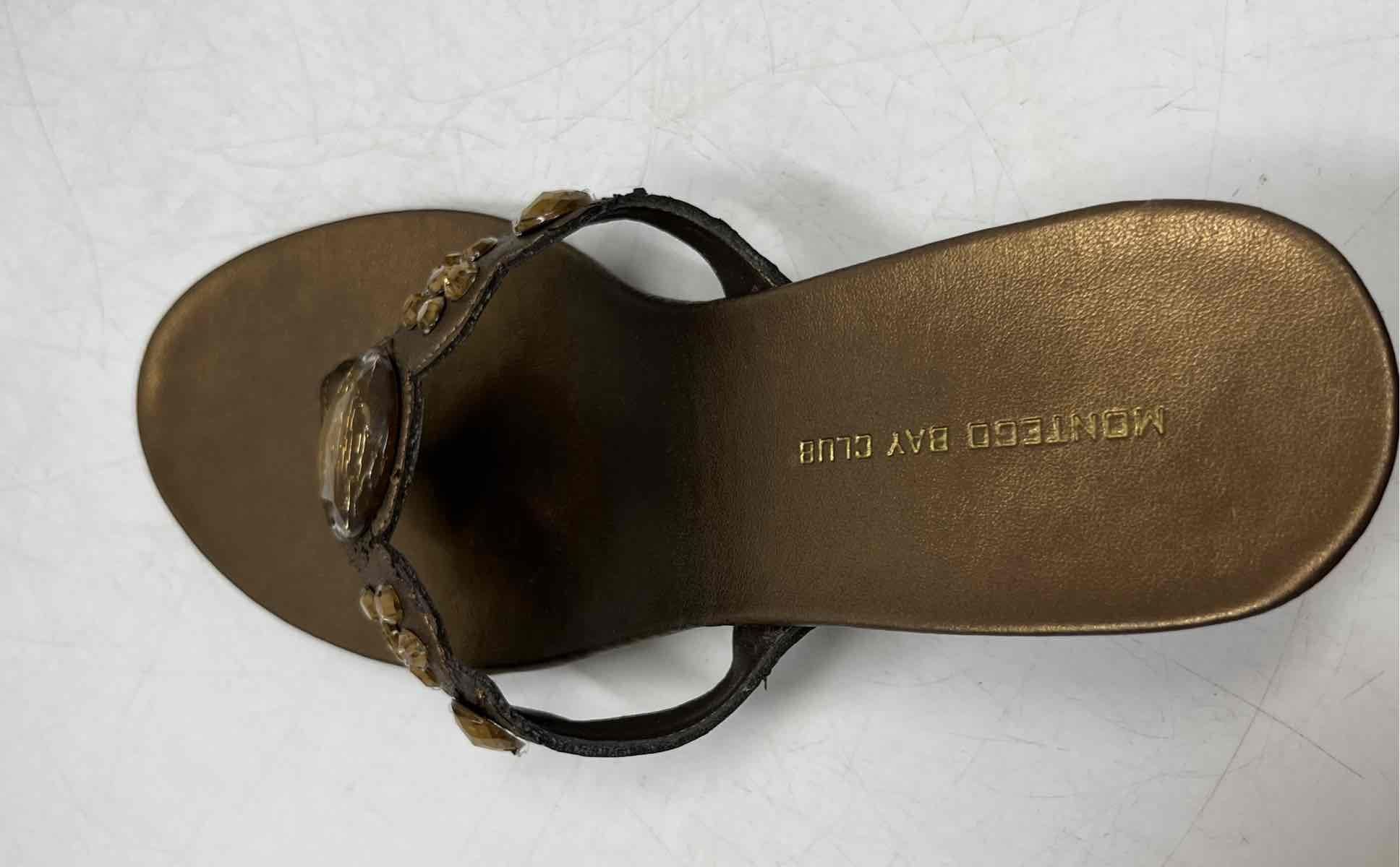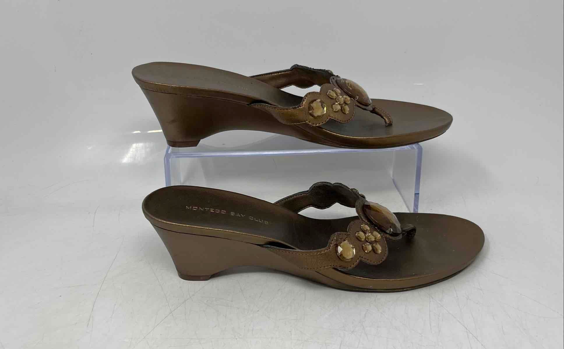 - Description: Montego Bay Club Womens Bronze Embellished Wedge Heel Thong Sandals Size 9