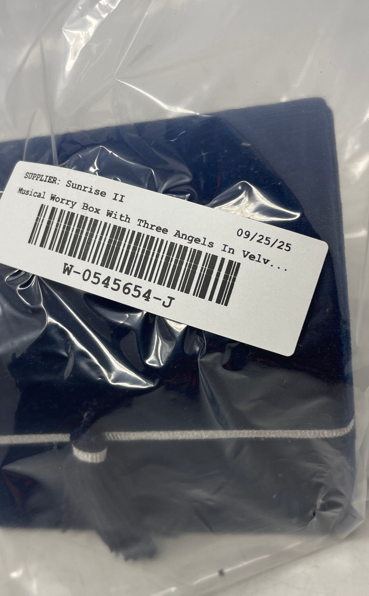 - Description: Musical Worry Box With Three Hand Spun Angels In Velvet Case