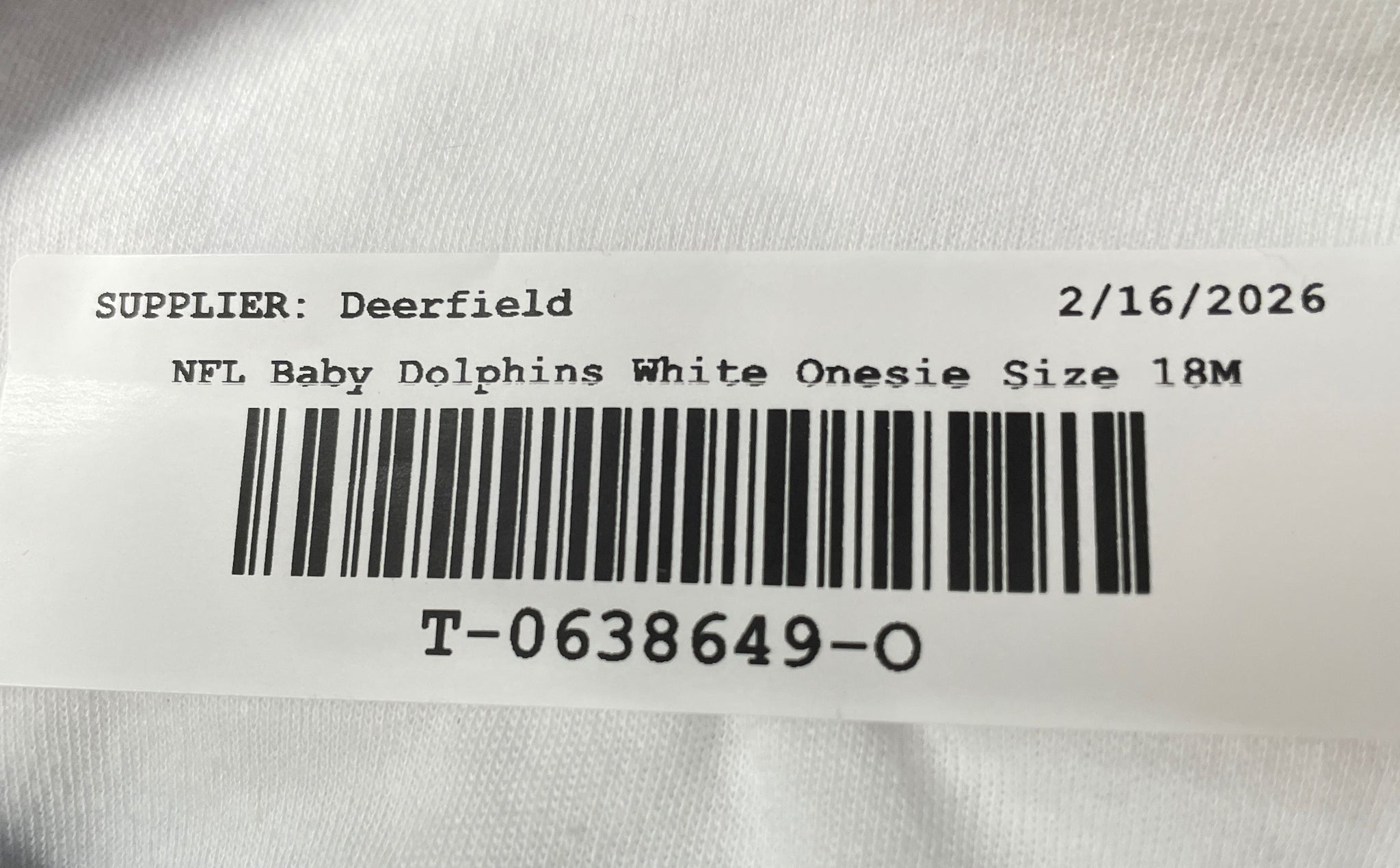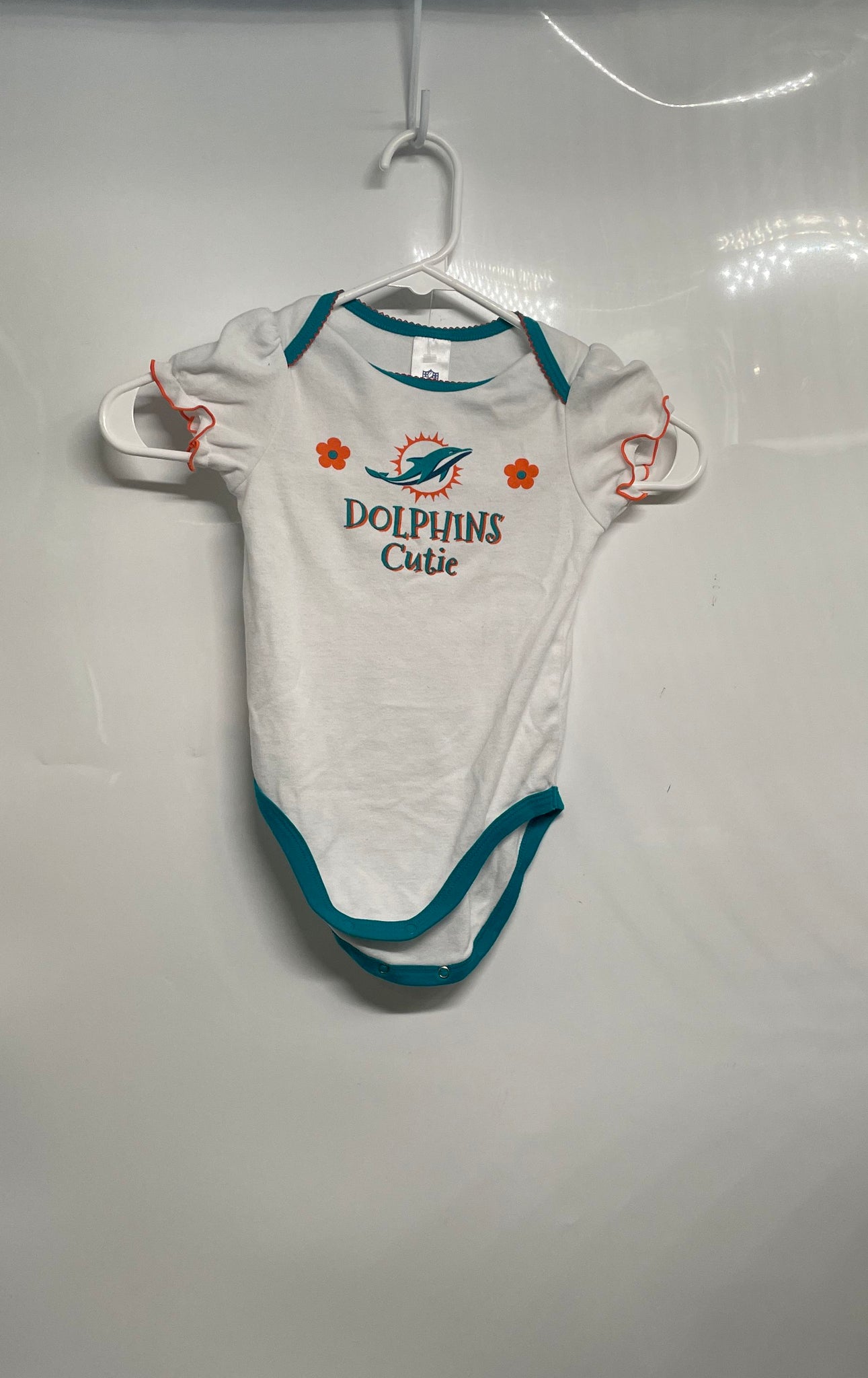 - Description: NFL Team Apparel Baby Girls White Miami Dolphins One-Piece Bodysuit Size 18M