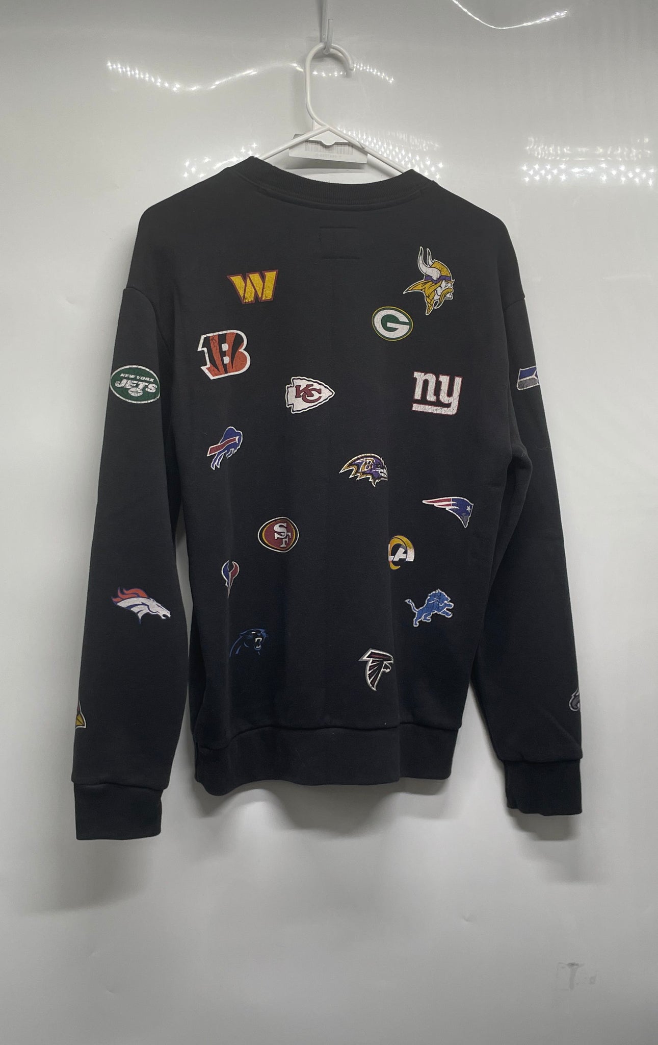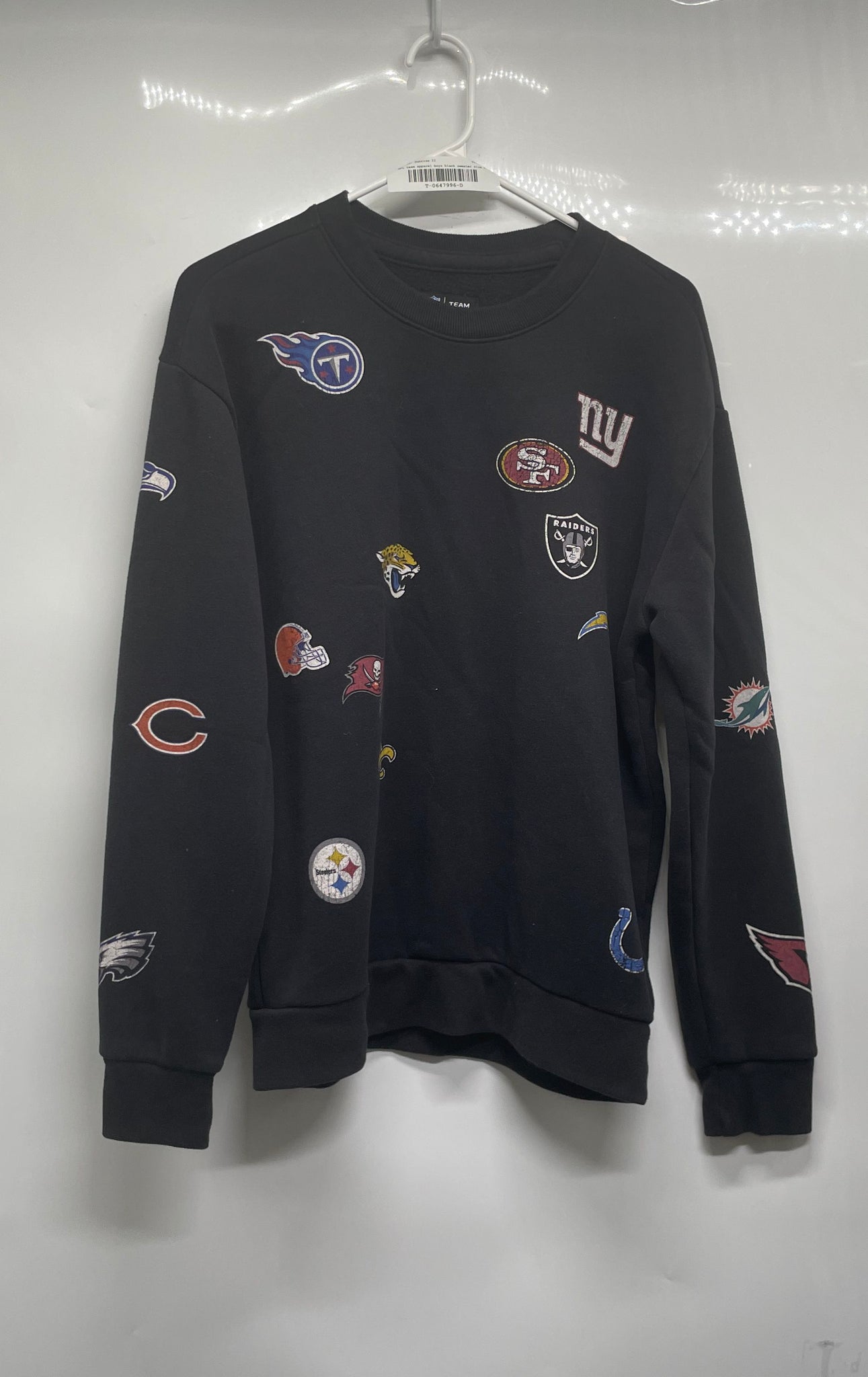 - Description: NFL Team Apparel Boys Black Long Sleeve Crew Neck Relaxed Football Sweater Sz S