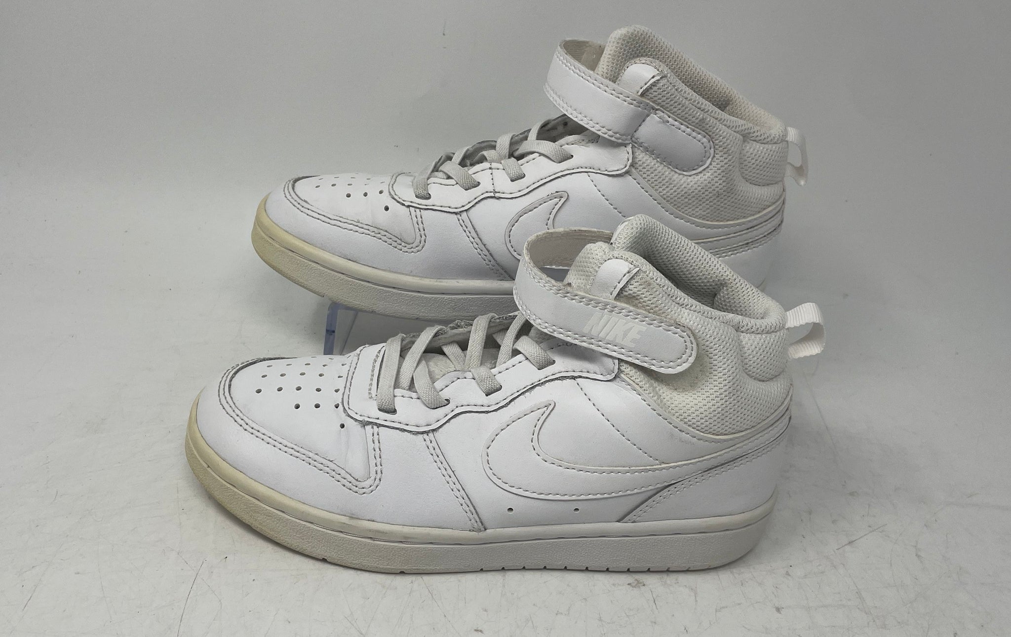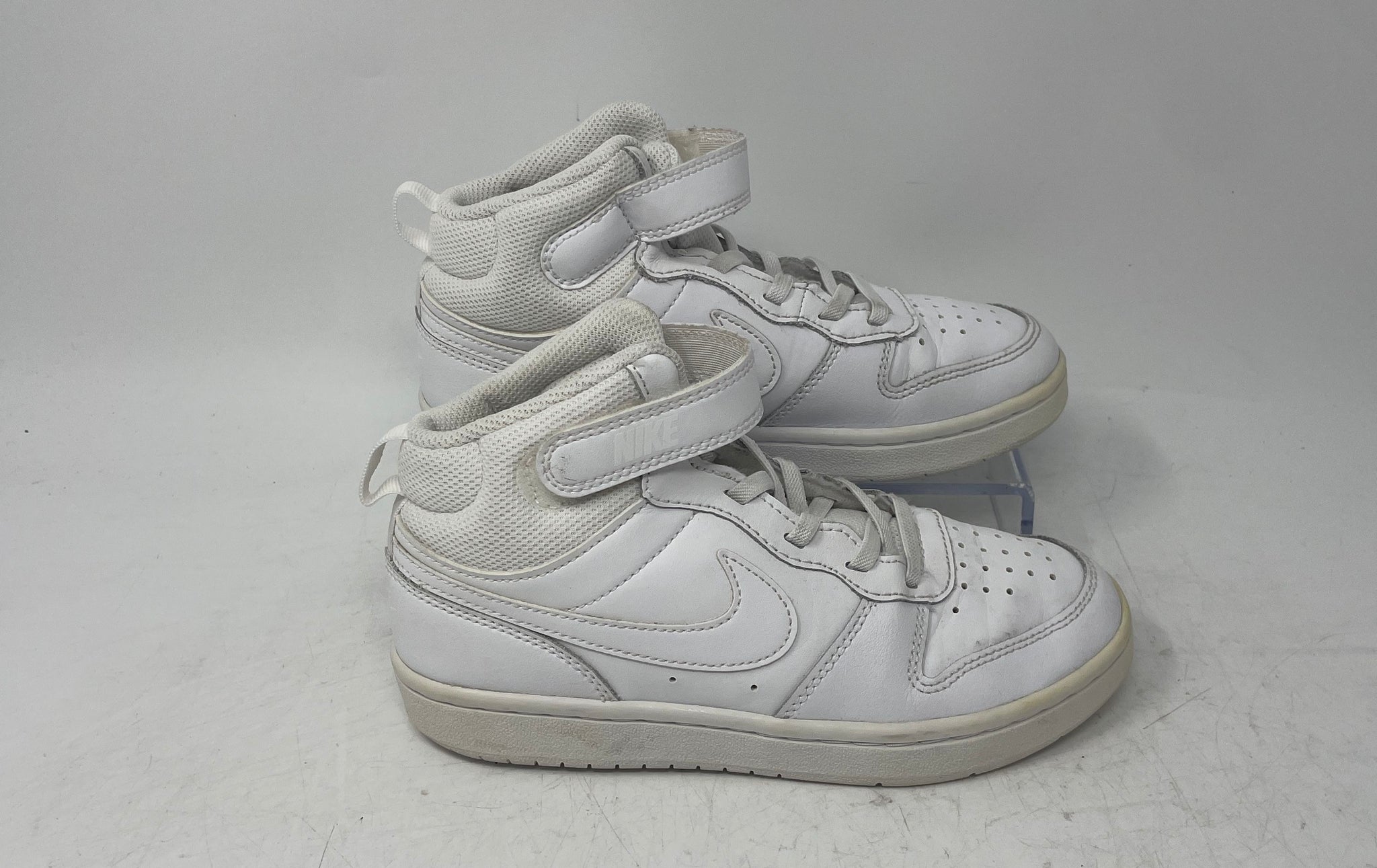 - Description: Nike Kids Court Borough Mid 2 White Leather Lace-Up Sneaker Shoes Size 1.5Y