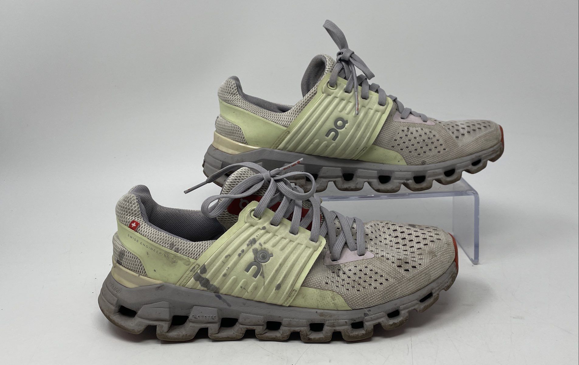 - Description: On Womens Cloudswift Gray Green Round Toe Low Top Lace-Up Running Shoes Size 8.5