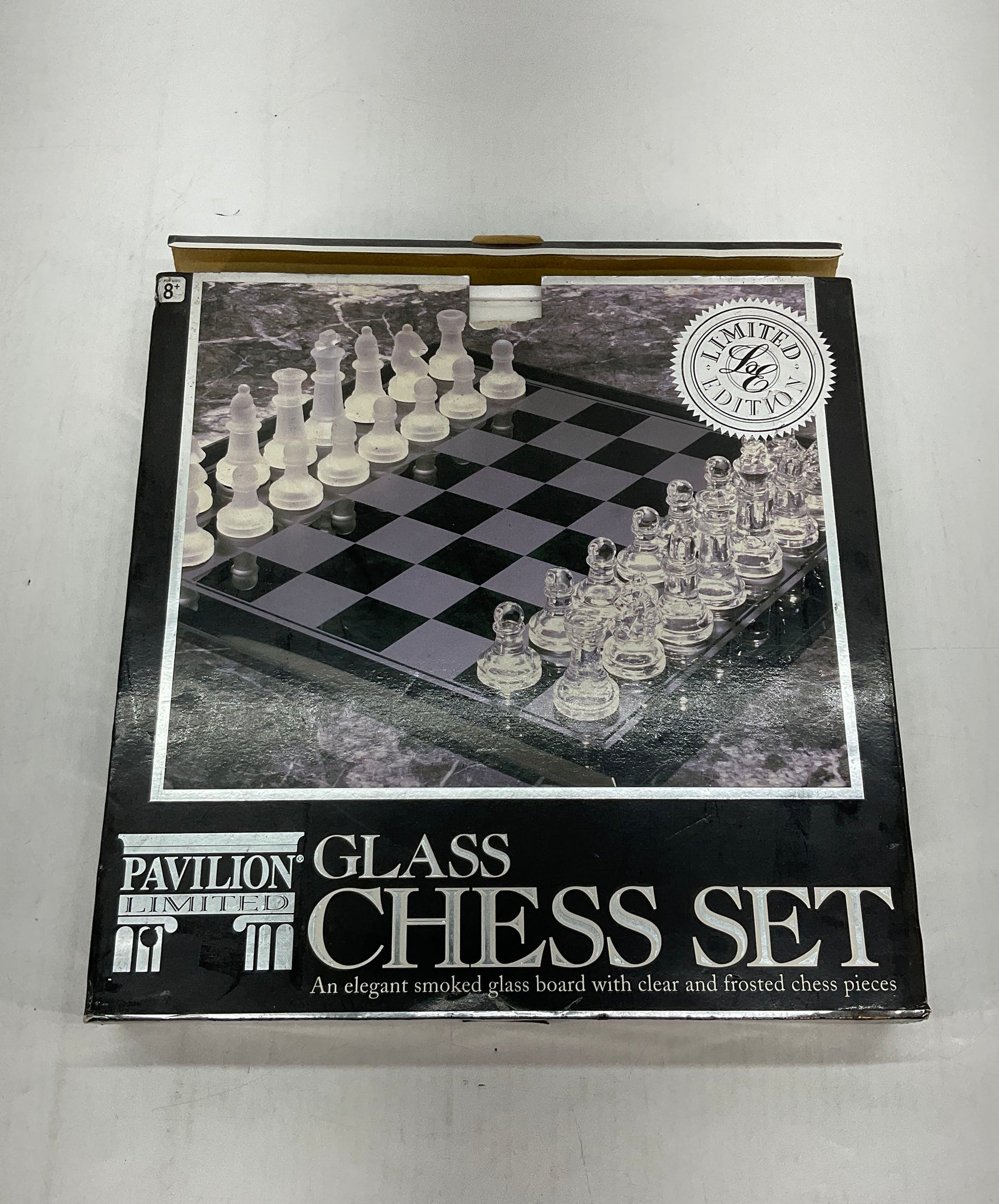 - Description: Pavilion Limited Glass Chess Set Clear Frosted Elegant Collectible Board Game