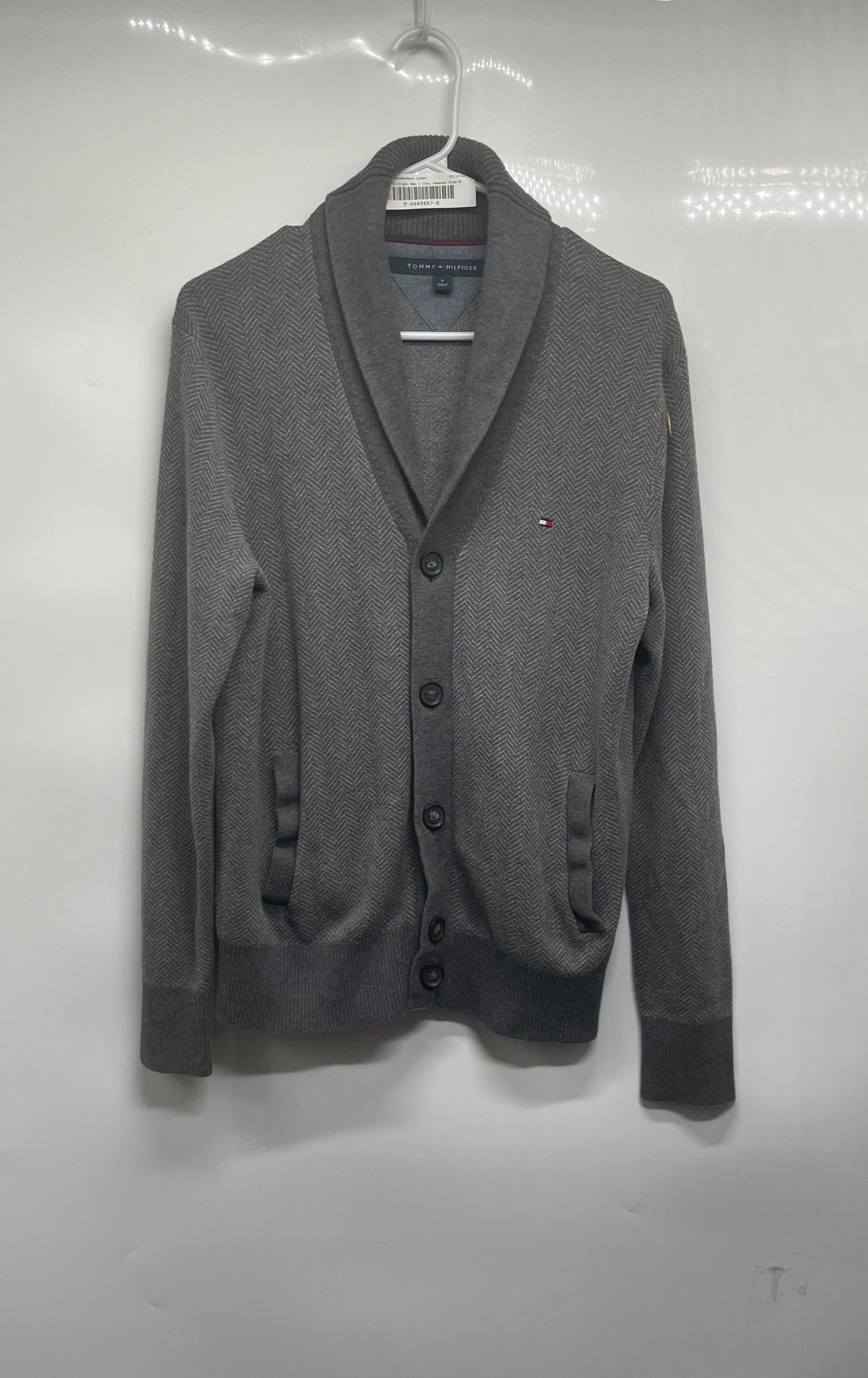 - Description: Tommy Hilfiger Mens Gray Collared Long Sleeve Knitted Cardigan Sweater Size M
