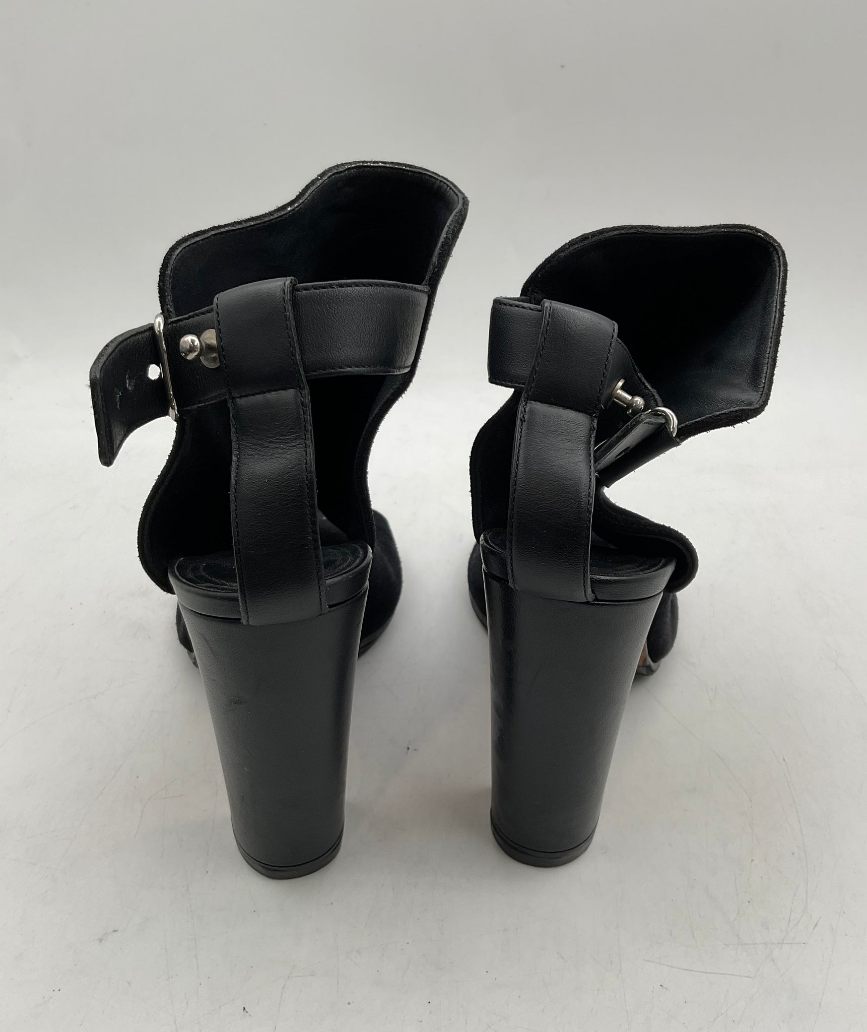 - Description: Vince Womens Addison Black Open Toe Block Ankle Booties Size 9M