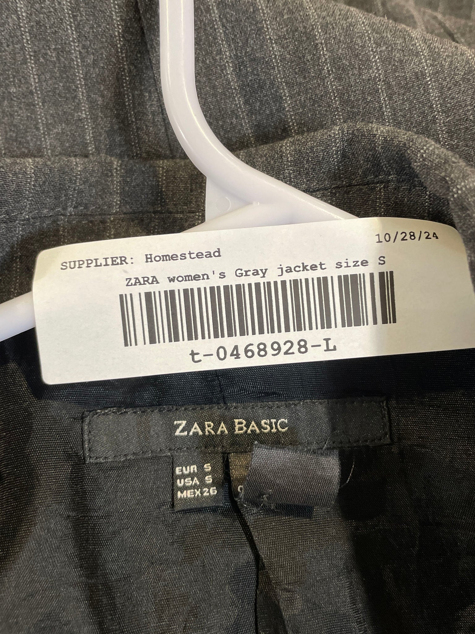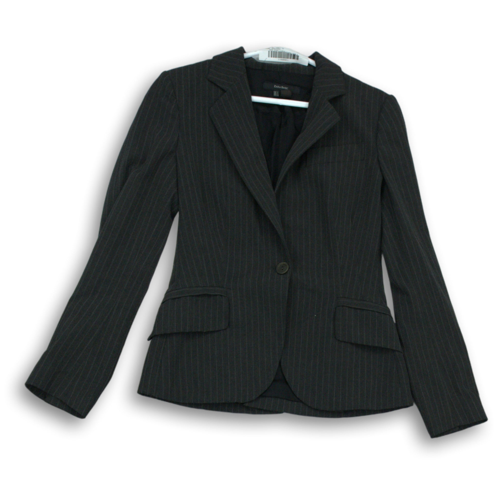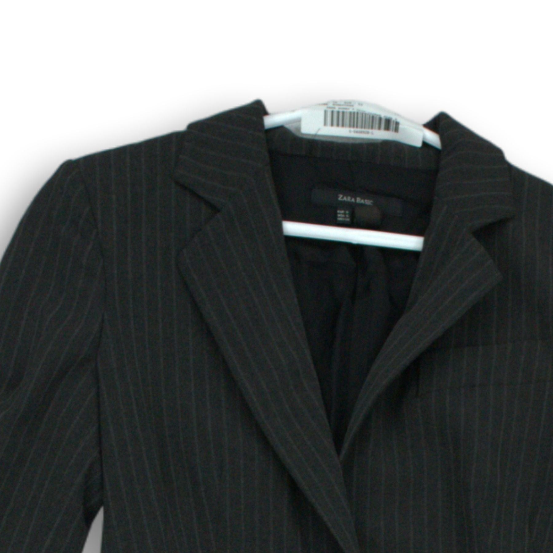 - Description: Zara Basic Womens Gray Striped Long Sleeve One-Button Jacket Size Small