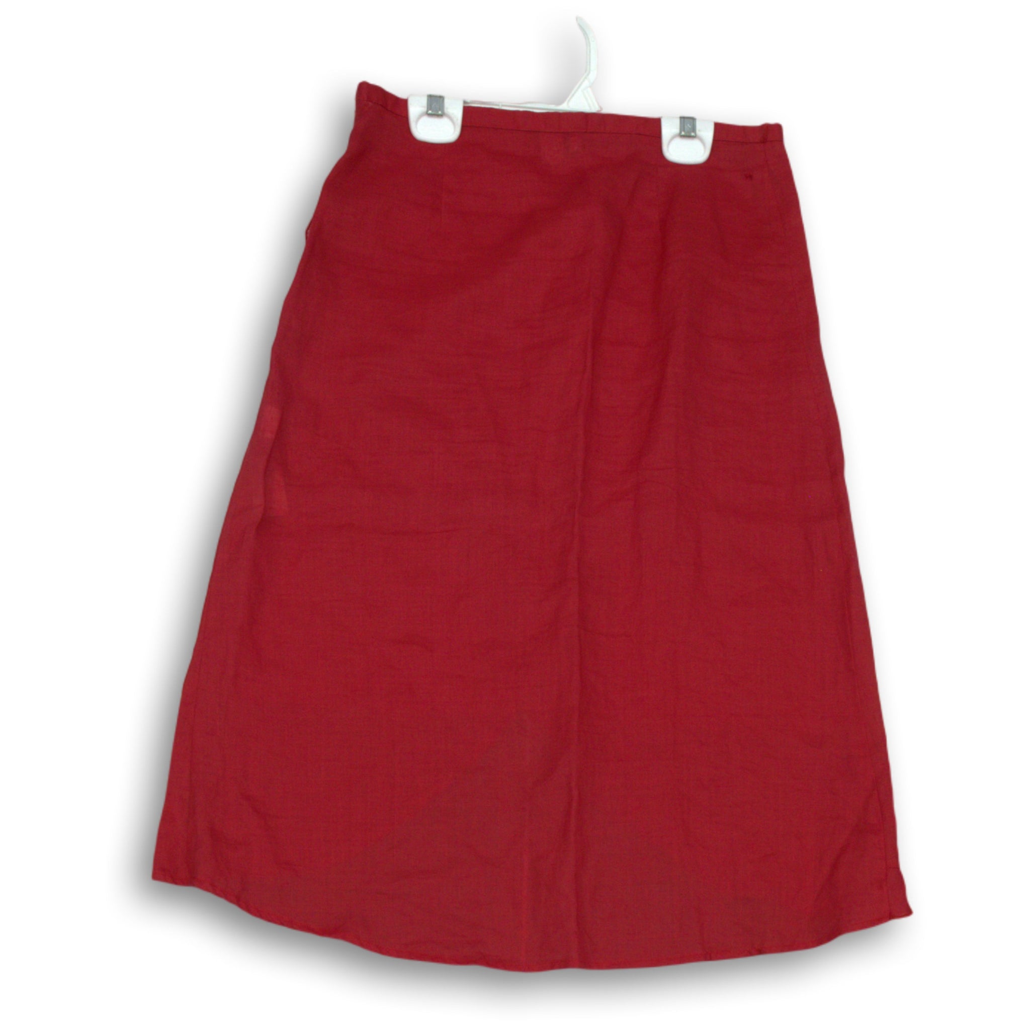 - Description: Zara Basic Womens Red Ramie Ruffle Knee Length A-Line Skirt Size Small